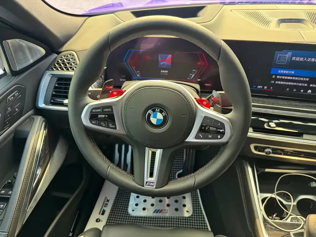 BMW X6 M Thunder для китайского рынка получила расширенный пакет оснащения по сравнению со стандартным BMW X6 M. В версии Thunder стандартом являются карбоновые (Carbon) элементы кузовного обвеса: сплиттер переднего бампера, боковые юбки и диффузор задней части. Салон отделан комбинацией натуральной кожи Merino и алькантары (Alcantara), с контрастной прострочкой и вставками из углеволокна (Carbon Fiber). Мультимедийная система построена на базе актуальной версии интерфейса BMW iDrive с поддержкой локальных китайских сервисов навигации и мультимедиа. Панорамная стеклянная крыша (Panoramic Sunroof) с электроприводом входит в стандартное оснащение версии Thunder. Система объёмного звука от премиального аудиопартнёра обеспечивает высокое качество воспроизведения музыки в салоне. Адаптивный круиз-контроль (ACC) с функцией Stop&Go, система удержания в полосе (Lane Keeping Assist) и система предупреждения о столкновении (Forward Collision Warning) входят в стандартный пакет активной безопасности. Светодиодная оптика (LED) с лазерным (Laser) дальним светом обеспечивает отличную видимость в ночное время. Колёсные диски эксклюзивного дизайна диаметром 22 дюйма с фирменной символикой M завершают спортивный образ автомобиля.