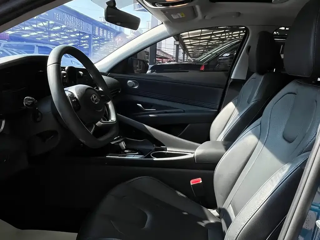 Комплектация ГЛХ Элит в линейке Хёндай Элантра (Hyundai Elantra) для китайского рынка предполагает достаточно богатое оснащение по меркам своей ценовой категории. В стандартное оснащение входит мультимедийная система с сенсорным экраном диагональю 8-10.25 дюйма, поддерживающая подключение смартфона по беспроводному или проводному протоколу. Предусмотрена цифровая приборная панель с конфигурируемым дисплеем, что придаёт интерьеру современный вид. Климатическая система представлена автоматическим двухзонным или однозонным климат-контролем в зависимости от года выпуска и конкретной конфигурации. В числе систем активной безопасности присутствует комплекс помощи водителю АДАС (ADAS), включающий систему предотвращения столкновений ФКА (FCA), систему удержания в полосе ЛКА (LCA) и адаптивный круиз-контроль АСЦ (ACC) - набор функций может варьироваться в зависимости от года производства. Среди удобств следует отметить бесключевой доступ и кнопку запуска двигателя, подогрев передних сидений, обогрев зеркал и заднего стекла. Сиденья обтянуты комбинированным материалом из ткани и искусственной кожи, передние имеют регулировку по высоте. Версия ГЛХ Элит также может включать камеру заднего вида, парктроники и систему контроля давления в шинах ТПМС (TPMS).