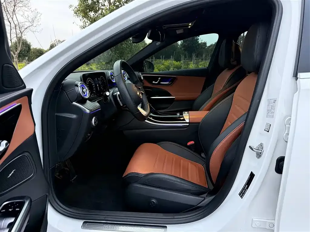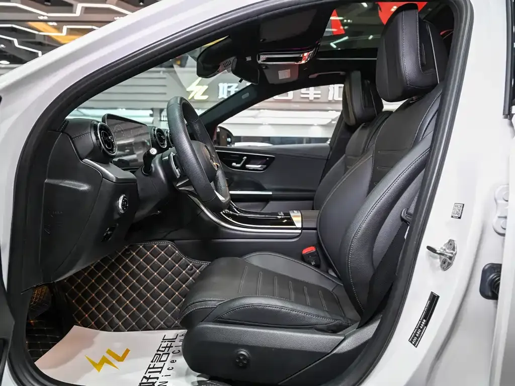 Версия Мерседес-Бенц С 200 Л Юньдун Бань получает специфический спортивный пакет, выделяющий её на фоне стандартных комплектаций С-Класс (C-Class) для китайского рынка. Экстерьер отличается спортивным обвесом AMG Лайн (AMG Line) — передним бампером с увеличенными воздухозаборниками, задним диффузором и боковыми порогами в агрессивном стиле. Колёсные диски увеличенного диаметра с многоспицевым рисунком в тёмном или двухтонном исполнении подчёркивают спортивный характер автомобиля. В интерьере используется комбинация кожи Наппа (Nappa) и алькантары (Alcantara) на сиденьях, руле и элементах отделки, а спортивные передние сиденья с улучшенной боковой поддержкой фиксируют водителя и пассажира в поворотах. Центральным элементом приборной панели является двойной изогнутый экран МБУКС (MBUX) — мультимедийная система Мерседес-Бенц (Mercedes-Benz User Experience) с диагональю дисплея около 11.9 дюймов для центральной консоли и 12.3 дюйма для цифровой приборной панели. Система МБУКС (MBUX) поддерживает голосовое управление, навигацию и интеграцию с китайскими сервисами — Вичат (WeChat), Алипэй (Alipay) и другими локальными приложениями. В оснащение входит система помощи водителю Драйвинг Ассистент (Driving Assistant), включающая адаптивный круиз-контроль (ACC), систему удержания в полосе, предупреждение о столкновении и автоматическое экстренное торможение. Панорамная стеклянная крыша, вентиляция и подогрев передних сидений, трёхзонный климат-контроль и система бесключевого доступа Кейлесс Гоу (Keyless Go) входят в стандартное оснащение данной версии. Звуковая система Бурместер (Burmester) в зависимости от рынка может быть доступна как опция или входить в базовую комплектацию спортивной версии.
