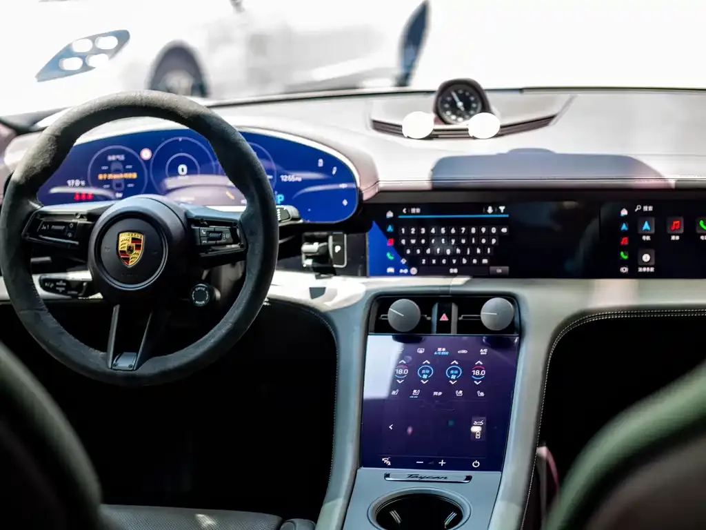 Базовая версия Порше Тайкан (Porsche Taycan Taycan) для китайского рынка включает богатое стандартное оснащение, соответствующее позиционированию бренда в премиальном сегменте. В стандартную комплектацию входят адаптивные светодиодные фары (ЛЕД / LED) с матричным управлением, цифровая приборная панель с изогнутым дисплеем, центральный тачскрин (сенсорный экран) диагональю около 10,9 дюйма, а также дополнительный экран для пассажира переднего ряда. Климатическая система с функцией предварительного кондиционирования салона позволяет подготовить автомобиль к поездке дистанционно, что особенно актуально в условиях китайского климата. Система помощи водителю включает адаптивный круиз-контроль, систему удержания в полосе, систему мониторинга слепых зон и автоматическое экстренное торможение. Аудиосистема Бозе (Bose) входит в стандартное оснащение, тогда как более продвинутая система Буrmester (Бурместер) доступна в качестве опции. Мультимедийная система Порше Коммуникейшн Менеджмент (Porsche Communication Management / ПКМ / PCM) поддерживает беспроводное подключение Эпл КарПлей (Apple CarPlay) и Андроид Ауто (Android Auto). Для китайского рынка система навигации адаптирована под местные картографические сервисы. Система управления зарядкой позволяет программировать время и параметры зарядки, оптимизируя ресурс аккумулятора.