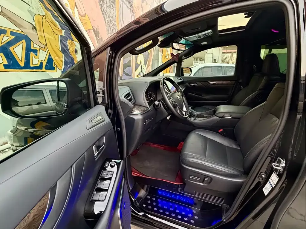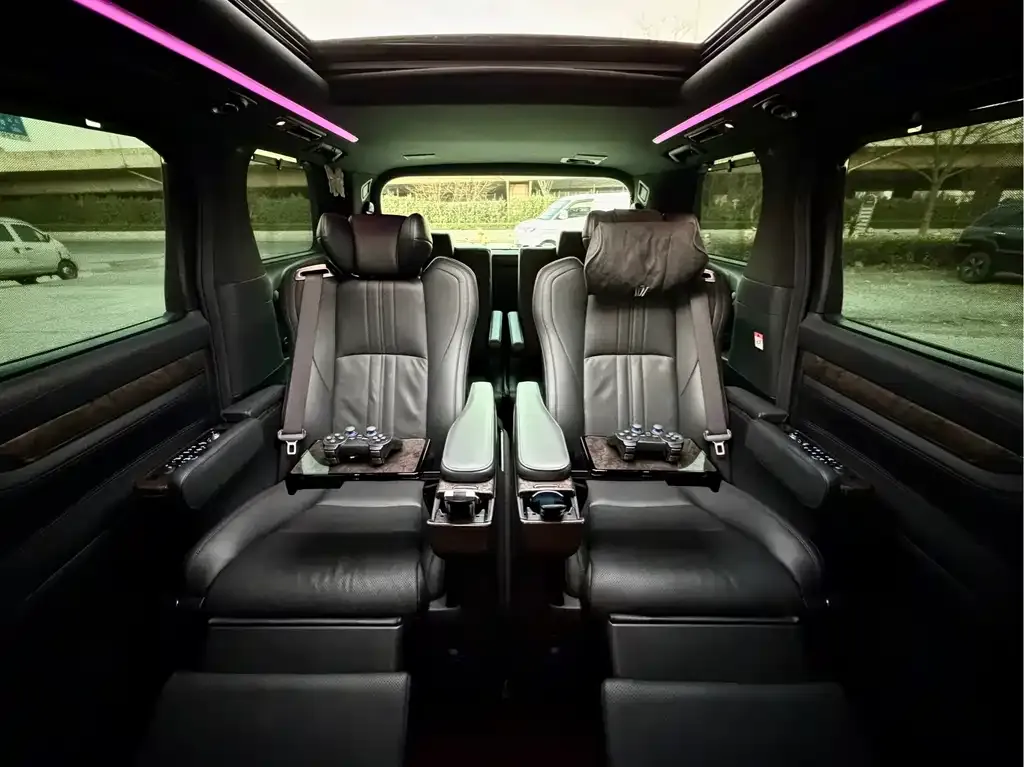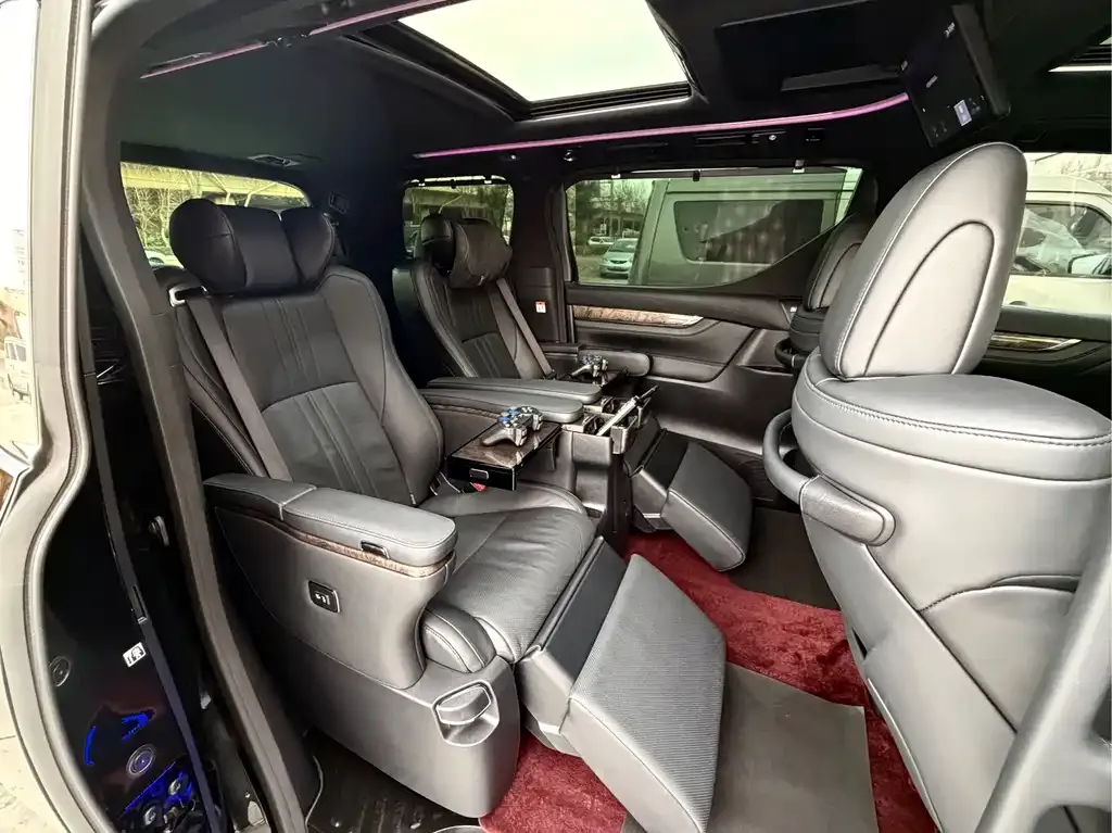 Версия Тойота Веллфайр (Toyota Vellfire) 2.5L Гибрид Цзуньгуй предлагает богатейшее оснащение, соответствующее статусу флагманского минивэна. Центральное место в интерьере занимают индивидуальные капитанские кресла второго ряда с электрической регулировкой, подогревом, вентиляцией и функцией массажа - атрибуты, характерные для автомобилей ВИП (VIP) класса. Мультимедийная система включает большой сенсорный дисплей с поддержкой беспроводного подключения смартфона (Карплей / CarPlay и Андроид Авто / Android Auto), навигацией и голосовым управлением. Климатическая система - многозонная автоматическая, с отдельными регуляторами для каждого ряда пассажиров, что позволяет создать индивидуальный микроклимат в салоне. В комплектацию Цзуньгуй входят светодиодная оптика (LED) спереди и сзади, электрические сдвижные двери с функцией бесконтактного открытия, панорамная крыша с электрошторкой и цифровая приборная панель. Активные системы безопасности включают пакет Тойота Сейфти Сенс (Toyota Safety Sense): адаптивный круиз-контроль, систему предупреждения о столкновении с автоматическим экстренным торможением, систему удержания в полосе и мониторинг слепых зон. Отделка салона выполнена из натуральной кожи с прострочкой, деревянных вставок и мягких материалов на всех поверхностях, с которыми контактируют пассажиры. Акустическая система премиального уровня, электрически регулируемая рулевая колонка и проекционный дисплей (Хед-ап дисплей / HUD) дополняют оснащение данной версии.