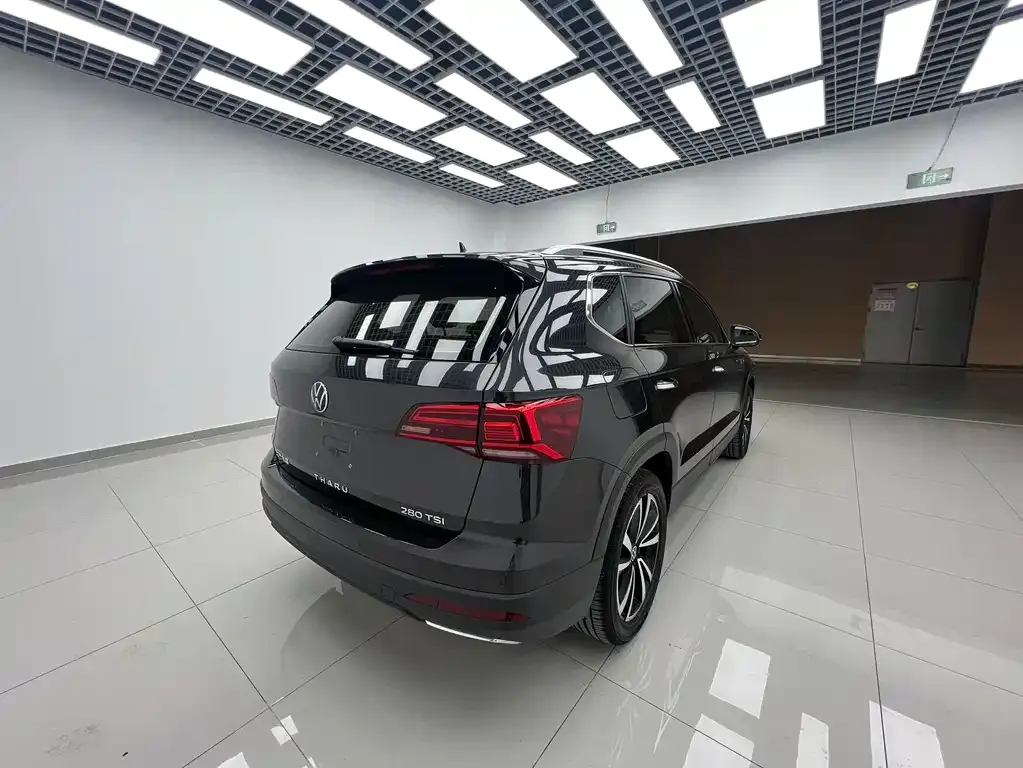 Версия Volkswagen Tharu 280TSI позиционируется как «Люкс» и предлагает богатое базовое оснащение, характерное для верхних комплектаций данного сегмента на китайском рынке. В стандартное оснащение входит мультимедийная система с сенсорным дисплеем, поддерживающая подключение смартфона через Эппл КарПлэй (Apple CarPlay) и Андроид Авто (Android Auto). Климатическая система представлена двухзонным автоматическим климат-контролем, обеспечивающим индивидуальную настройку температуры для водителя и переднего пассажира. Оптика выполнена на светодиодных элементах (LED) как спереди, так и сзади, что улучшает видимость и придаёт современный облик. В комплектацию «Люкс» входят подогрев передних сидений, электрорегулировка водительского кресла, а также панорамная крыша, популярная среди китайских покупателей. Система помощи при парковке включает камеру заднего вида и парктроники. Среди активных систем безопасности присутствуют система экстренного торможения ФронтАссист (Front Assist), система удержания в полосе (Lane Assist / ЛейнАссист), а также адаптивный круиз-контроль (АКК / ACC - Adaptive Cruise Control) в зависимости от конфигурации. Интерьер отличается качественными материалами отделки, характерными для бренда Volkswagen: мягкие вставки на панели, хромированные акценты и аккуратная сборка.