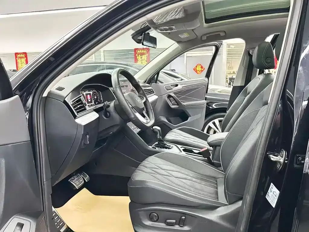 Комплектация Р-Лайн Юэ Сян для Volkswagen Tiguan L версии 330ТСИ (330TSI) предполагает расширенный набор оснащения по сравнению со стандартными версиями линейки. Снаружи автомобиль выделяется спортивным обвесом Р-Лайн (R-Line): специфическими передним и задним бамперами, боковыми порогами, а также хромированными и глянцевыми декоративными элементами. Интерьер оформлен в соответствии с философией Р-Лайн (R-Line): спортивные сиденья с характерной вышивкой, рулевое колесо с плоским нижним срезом, специальные накладки на педали и декоративные вставки. В данной версии, как правило, предусмотрена мультимедийная система с большим сенсорным дисплеем, поддержкой беспроводного подключения Эппл КарПлэй (Apple CarPlay) и Андроид Авто (Android Auto), а также навигационным программным обеспечением, адаптированным для китайского рынка. Среди систем безопасности в версии Юэ Сян доступны: система автоматического экстренного торможения АЕБ (AEB, Autonomous Emergency Braking), система удержания в полосе движения, система мониторинга слепых зон, а также система помощи при парковке с камерами кругового обзора. Климатическая установка в данной комплектации, как правило, двухзонная с возможностью раздельной регулировки для водителя и переднего пассажира. Панорамная крыша является одной из ключевых опций, доступных в версии Р-Лайн Юэ Сян, что особенно востребовано на китайском рынке. Светодиодная оптика (LED) спереди и сзади входит в стандартное оснащение данной версии, обеспечивая современный облик и высокую эффективность освещения дороги. Система бесключевого доступа и кнопка запуска двигателя также присутствуют в данной комплектации.