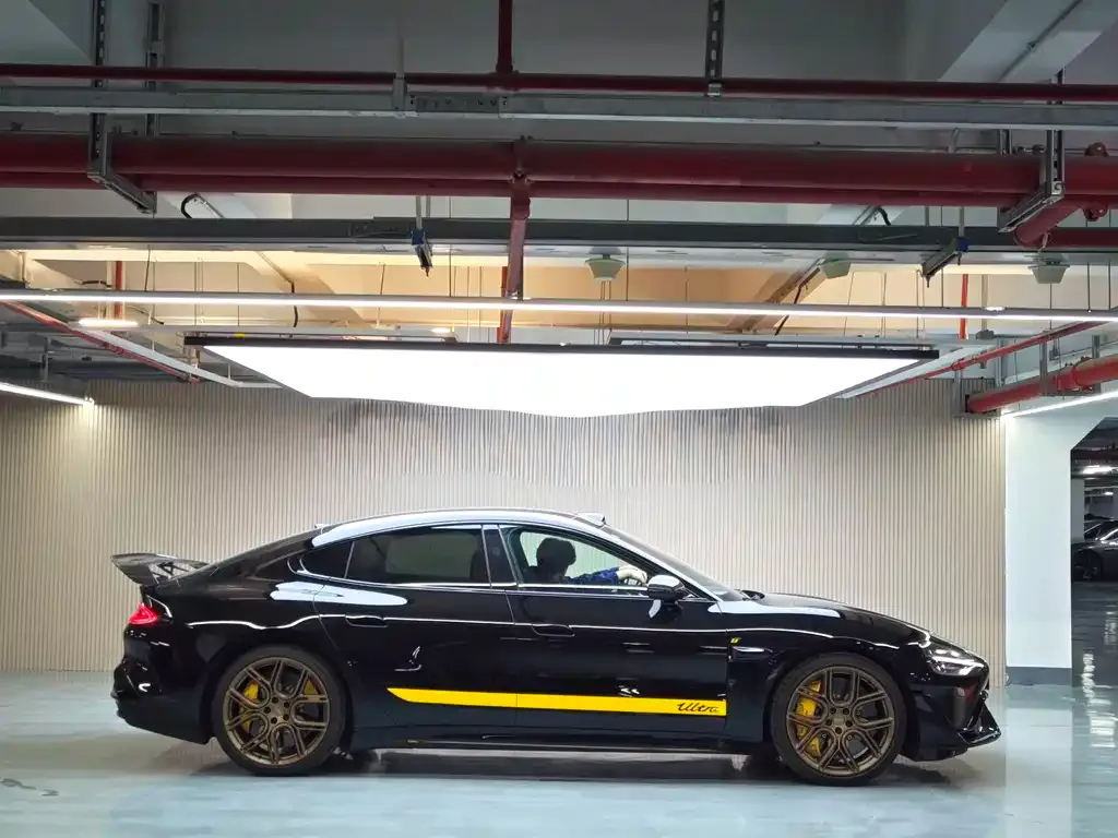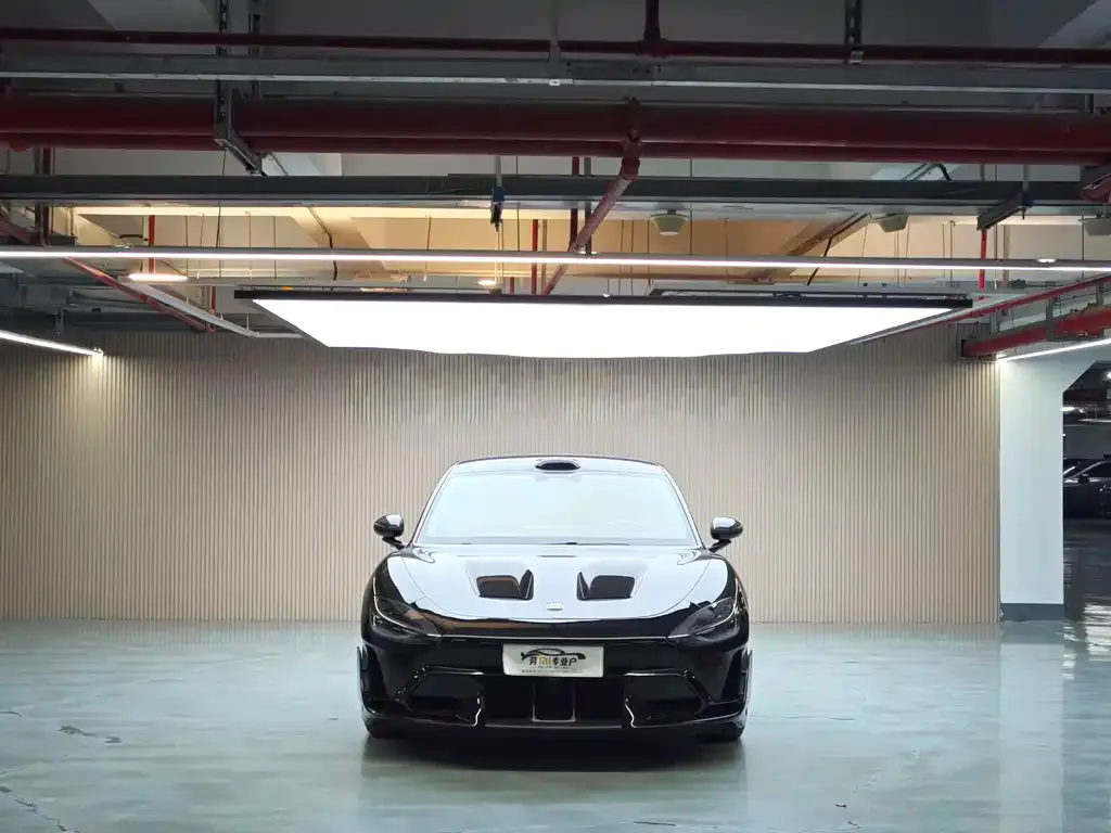 Xiaomi SU7 Ultra Ultra построен на фирменной платформе Сяоми ХайПер-ОС Кар (Xiaomi HyperOS Car) и использует трёхмоторную полноприводную компоновку АВД (AWD), обеспечивающую исключительную тягу на всех четырёх колёсах. Суммарная отдача силовой установки в версии Ультра (Ultra) превышает 1000 лошадиных сил, что позволяет разгоняться с места до 100 км/ч менее чем за 2 секунды - результат, сопоставимый с лучшими мировыми гиперкарами. Тяговая батарея версии Ультра (Ultra) отличается увеличенной ёмкостью по сравнению с базовыми версиями СЮ7 и обеспечивает запас хода по циклу ЦЛТК (CLTC) в зависимости от режима езды и условий эксплуатации. Поддерживается быстрая зарядка постоянным током высокой мощности, что позволяет восполнить значительную часть заряда за короткое время на соответствующих станциях. Кузов седана отличается агрессивной аэродинамикой: активный задний спойлер, диффузор и оптимизированные воздуховоды снижают коэффициент лобового сопротивления до рекордно низких значений для серийного автомобиля этого класса. Подвеска версии Ультра (Ultra) - адаптивная, с электронным управлением, обеспечивающая возможность выбора между комфортным и спортивным режимами. Колёсная база и общие габариты соответствуют классу крупного седана: длина кузова превышает 4,9 м, что гарантирует просторный салон при спортивном силуэте. Тормозная система оснащена карбон-керамическими дисками (в зависимости от комплектации), способными выдерживать экстремальные тепловые нагрузки при интенсивном замедлении. Система полного привода АВД (AWD) с векторизацией крутящего момента позволяет точно распределять тягу между осями и отдельными колёсами, обеспечивая нейтральную управляемость даже в предельных режимах. Расход электроэнергии в смешанном цикле у Xiaomi SU7 Ultra Ultra составляет, по данным производителя, около 15-20 кВт·ч на 100 км в зависимости от стиля вождения и дорожных условий. Шины версии Ультра (Ultra) имеют увеличенный профиль и ширину по сравнению со стандартными версиями, что улучшает сцепление с дорогой при динамичной езде. Максимальная скорость ограничена электроникой на уровне, соответствующем требованиям безопасности для дорог общего пользования, однако в режиме трека (Track) ограничения могут быть изменены. Масса автомобиля из-за батареи большой ёмкости и трёхмоторной установки значительна, однако низкое расположение центра тяжести компенсирует этот фактор при динамичном вождении.