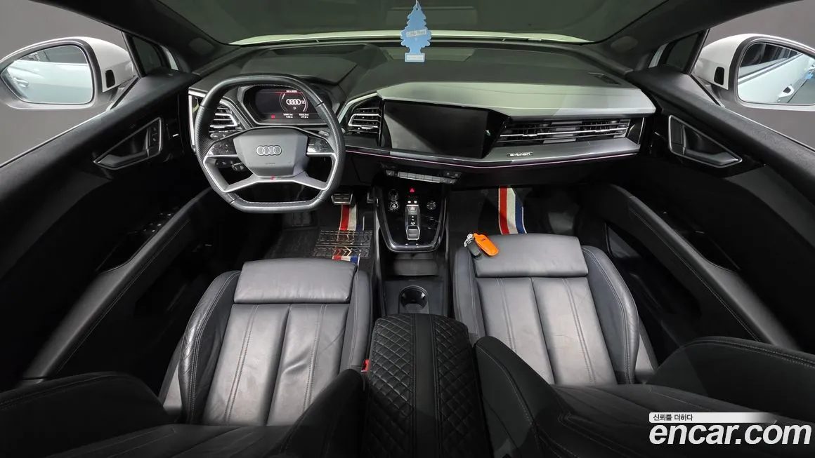Комплектация 40 Premium Sportback предполагает расширенный набор оснащения по сравнению с базовой версией, ориентированный на корейского покупателя премиального сегмента. В стандартное оснащение входит виртуальная приборная панель (Virtual Cockpit) с диагональю 10,25 дюйма, а также центральный сенсорный дисплей системы информационно-развлекательного комплекса (MMI) диагональю 11,6 дюйма. Система позиционирования (GPS-навигация) интегрирована в мультимедийный комплекс и поддерживает прокладку маршрутов с учётом расположения зарядных станций. Светодиодная оптика (LED) входит в стандартное оснащение, а ряд версий для корейского рынка может быть дополнен матричными светодиодными фарами (Matrix LED). Панорамная стеклянная крыша обеспечивает дополнительное освещение салона, создавая ощущение простора. Система помощи при парковке (parking assist) с камерой заднего вида входит в базовое оснащение версии Premium. Кожаная обивка сидений с электрорегулировками водительского кресла, подогрев передних сидений и руля доступны в данной комплектации. Система климат-контроля с тепловым насосом (heat pump) - важная опция для электромобиля, повышающая эффективность обогрева в холодное время года, - в ряде рынков входит в стандарт версии Premium.