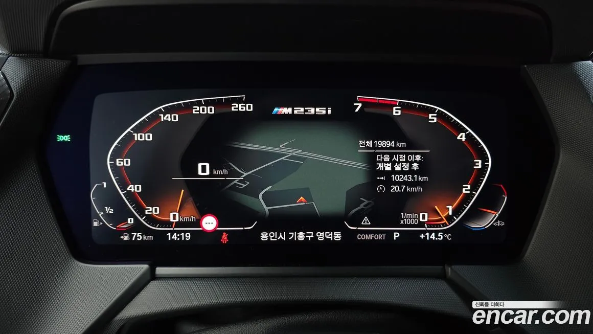 Версия БМВ 2-Серии М235и хДрайв (BMW 2-Series M235i xDrive) для корейского рынка, как правило, поставляется в богато оснащённой конфигурации, включающей систему адаптивного светодиодного (LED) освещения и фары с лазерным дальним светом (Laser Light) в зависимости от пакета опций. Интерьер выполнен с применением отделочных материалов уровня М Перформанс (M Performance): спортивные сиденья с интегрированными подголовниками, отделка руля перфорированной кожей и алюминиевые вставки в декоре салона подчёркивают спортивный характер автомобиля. Информационно-развлекательная система включает экран диагональю около 10.25 дюйма с операционной системой iДрайв (iDrive) последнего поколения, поддерживающей беспроводное подключение Эппл КарПлей (Apple CarPlay) и Андроид Авто (Android Auto). Среди систем активной безопасности предусмотрены адаптивный круиз-контроль, система экстренного торможения, контроль мёртвых зон и система удержания в полосе, что соответствует современным стандартам премиального сегмента. Климатическая система с двухзонным управлением, подогрев передних и задних сидений, а также подогрев рулевого колеса входят в базовое оснащение версии М235и хДрайв (M235i xDrive). Колёсные диски размером 18 или 19 дюймов в стиле М (M Style) придают автомобилю агрессивный визуальный облик, соответствующий его динамическим возможностям. Система управления шасси с режимами вождения - Эко Про (Eco Pro), Комфорт (Comfort), Спорт (Sport) и Спорт Плюс (Sport Plus) - позволяет адаптировать поведение автомобиля под конкретные условия эксплуатации. Акустическая система Харман Кардон (Harman Kardon) доступна в качестве опции и обеспечивает высококачественное звучание в салоне.