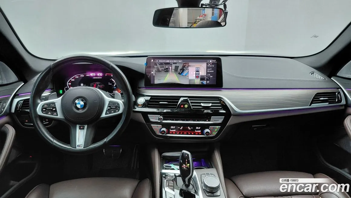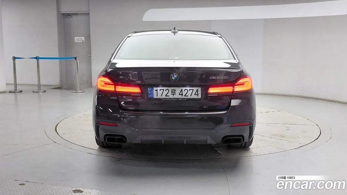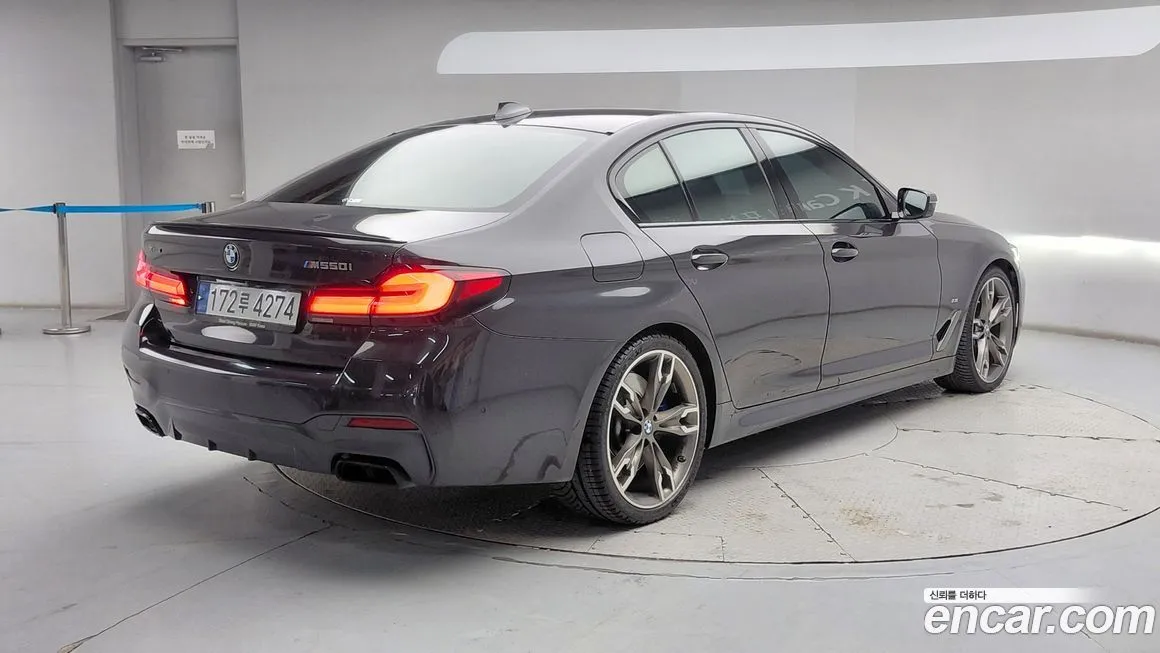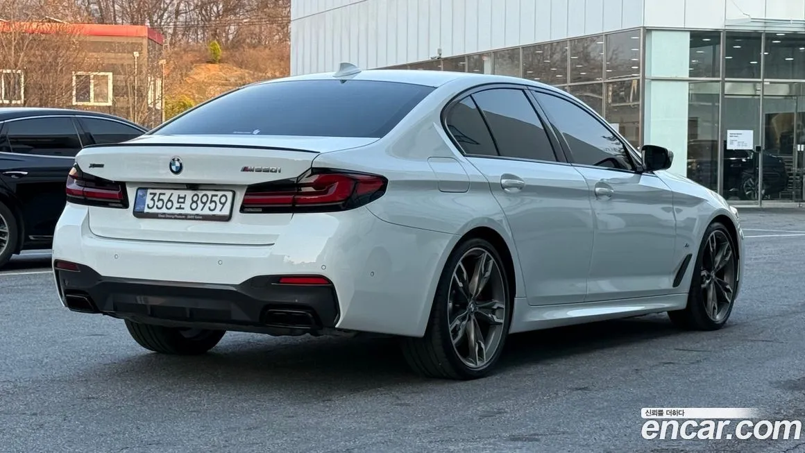 БМВ 5-Серия М550и икс Драйв (BMW 5-Series M550i xDrive) для корейского рынка поставляется в богатой стандартной комплектации, включающей полный пакет М Спорт (M Sport) с аэродинамическими обвесами, спортивными порогами и диффузором. Интерьер оснащается кожаной отделкой Мерино (Merino) или Найтвижн (Nappa) в зависимости от опций, спортивными сиденьями М (M Sport Seats) с развитой боковой поддержкой и регулировкой в нескольких направлениях с памятью. Мультимедийная система оперирует на базе платформы айДрайв 7 (iDrive 7) или айДрайв 8 (iDrive 8) в зависимости от года выпуска, с сенсорным дисплеем диагональю 12,3 дюйма и цифровой приборной панелью. Система помощи водителю Драйвинг Ассистент Профессионал (Driving Assistant Professional) включает адаптивный круиз-контроль, систему удержания в полосе и автоматическое экстренное торможение. Панорамная стеклянная крыша, проекционный дисплей (Хэд-ап Дисплей / Head-Up Display) и аудиосистема Бауэрс энд Уилкинс (Bowers & Wilkins) входят в стандартное или опциональное оснащение для корейского рынка. Система бесключевого доступа и запуска двигателя Комфорт Аксесс (Comfort Access), беспроводная зарядка смартфона и порты УСБ (USB) типа А и С также предусмотрены в оснащении. Подогрев и вентиляция передних сидений, подогрев задних сидений и рулевого колеса входят в стандартную комплектацию для корейского рынка. Опционально доступны карбоновые вставки М (M Carbon) в интерьере, расширенная система ночного видения Найт Вижн (Night Vision) и парковочный ассистент с камерами кругового обзора.