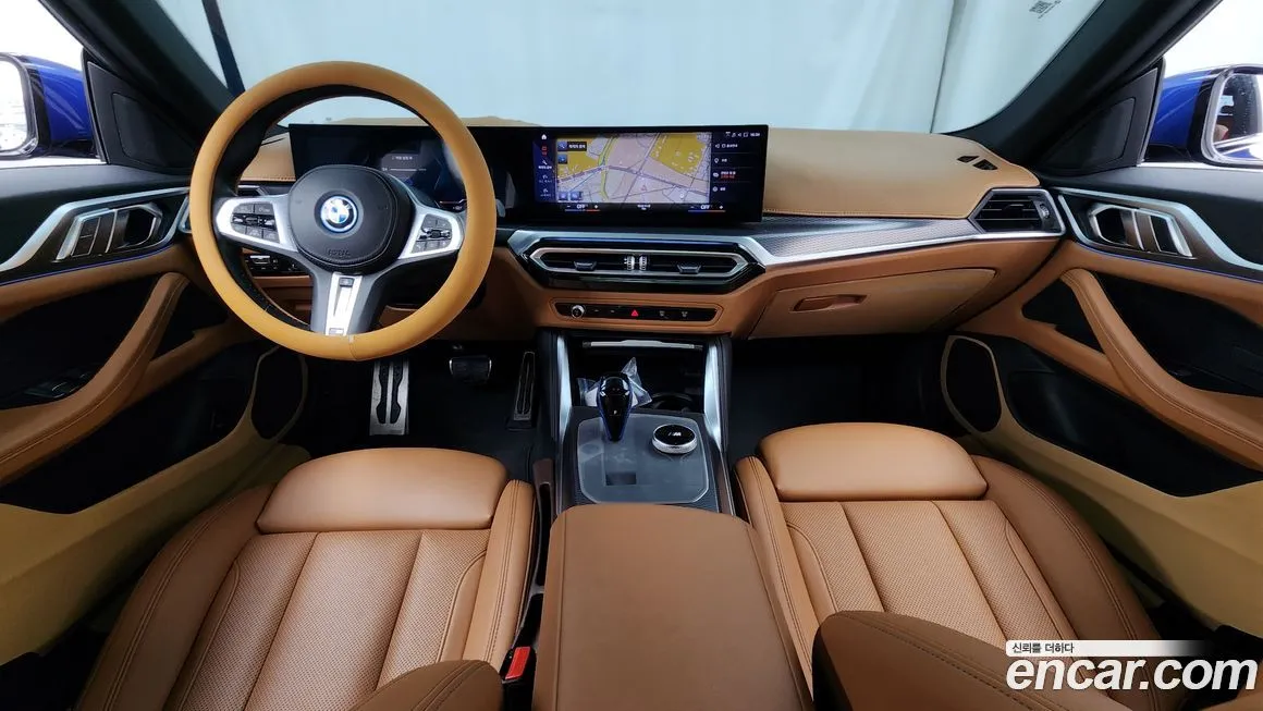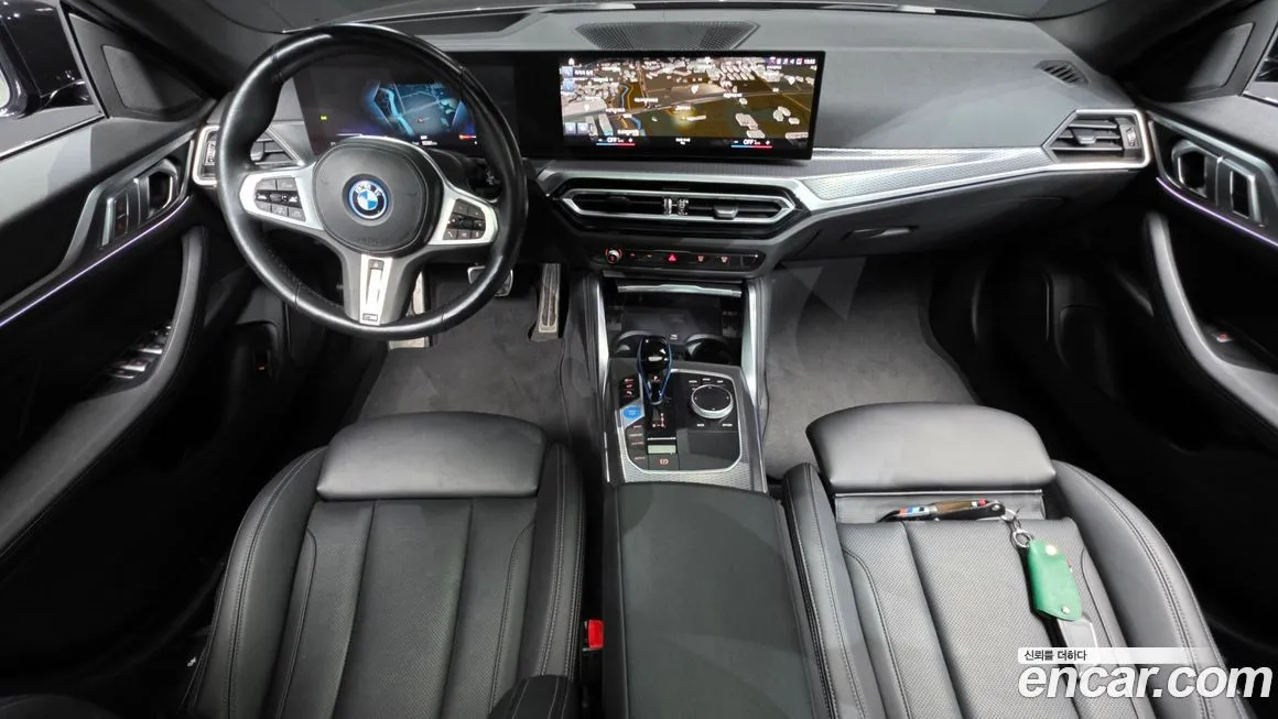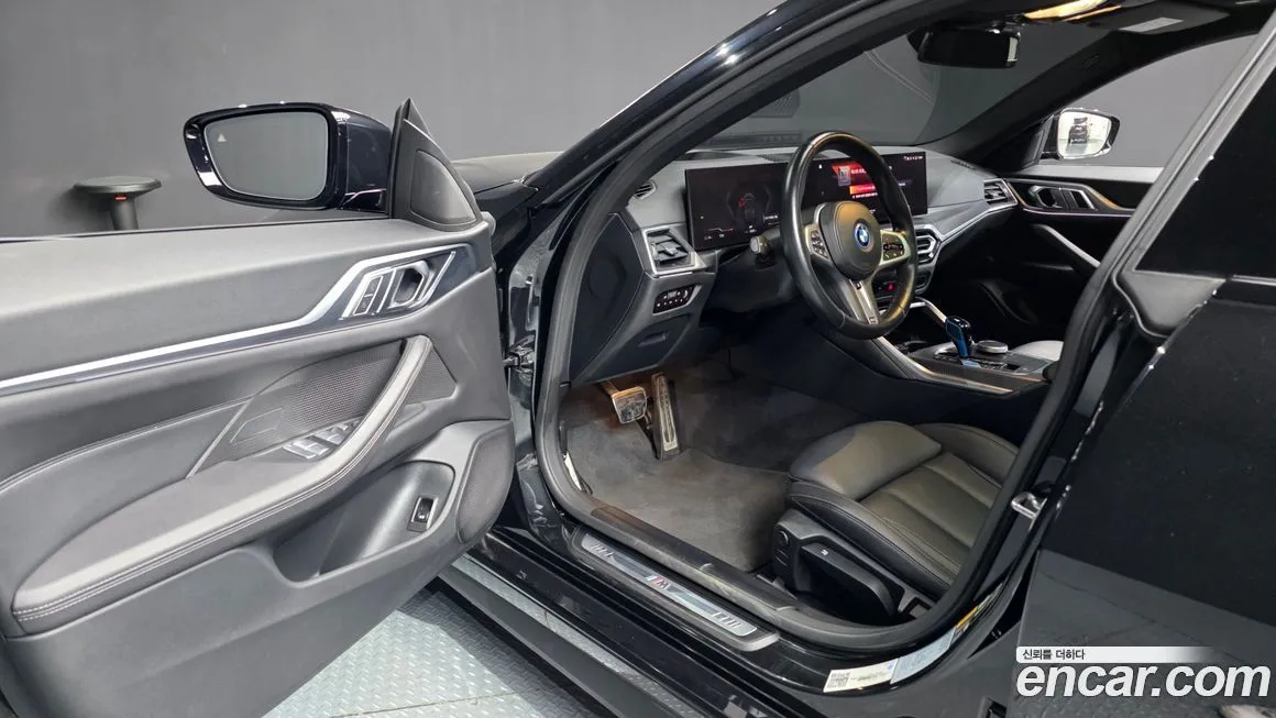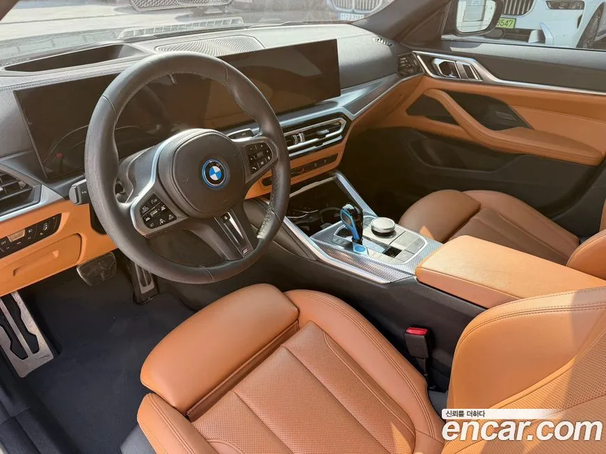 Версия BMW i4 eDrive40 M Sports отличается от стандартных комплектаций расширенным спортивным пакетом, который включает аэродинамический обвес кузова с характерной решёткой-ноздрями в чёрном глянцевом исполнении. Интерьер оснащён спортивными сиденьями M с улучшенной боковой поддержкой, обитыми кожей Vernasca с характерной строчкой. Изогнутый дисплей BMW Curved Display объединяет 12,3-дюймовый приборный щиток и 14,9-дюймовый центральный экран на единой панели. Система управления BMW iDrive восьмого поколения поддерживает беспроводное подключение Apple CarPlay и Android Auto. Проекционный дисплей (Head-Up Display) с дополненной реальностью (AR) проецирует навигационные подсказки непосредственно на дорогу. Аудиосистема Harman Kardon с 16 динамиками обеспечивает высококачественное звучание. Система помощи водителю включает адаптивный круиз-контроль (ACC), систему удержания в полосе (Lane Keeping Assistant), а также автоматическую парковку (Parking Assistant Plus). Панорамная стеклянная крыша с электроприводом штатно входит в оснащение данной версии для корейского рынка. Климатическая система с тремя зонами регулировки и функцией предварительного кондиционирования салона от зарядной сети дополняет комфортное оснащение.