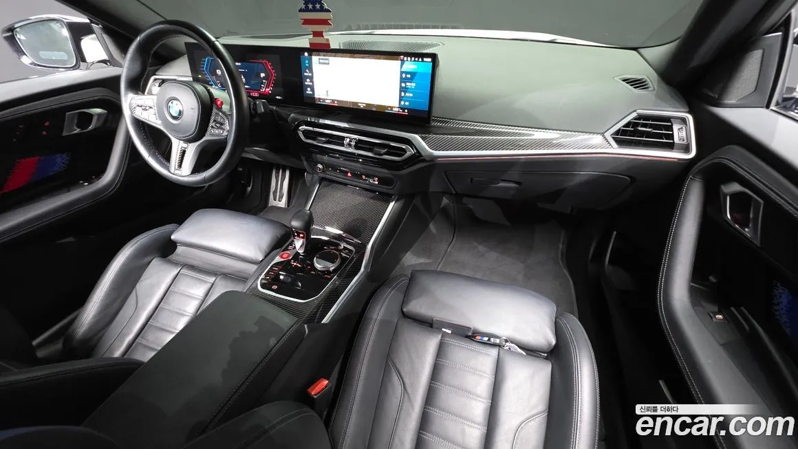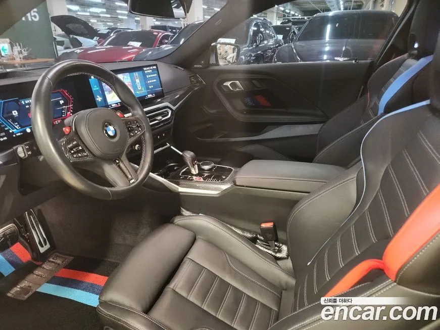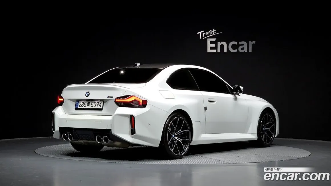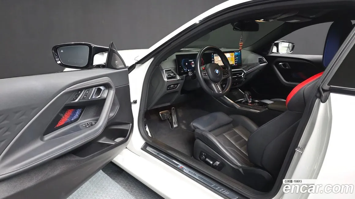 БМВ М2 Купе (BMW M2 Coupe) для корейского рынка поставляется с богатым стандартным оснащением, соответствующим ожиданиям покупателей премиального сегмента. В базовой комплектации предусмотрены светодиодная оптика (LED) с адаптивным освещением, система кругового обзора, цифровая приборная панель М (M Digital Cluster) и центральный дисплей системы мультимедиа АйДрайв (iDrive) диагональю 12.3 дюйма. Спортивные сиденья М (M Sport Seats) с развитой боковой поддержкой обтянуты кожей Мерино (Merino Leather) в базовой версии для корейского рынка. Мультифункциональный спортивный руль М (M Sport Steering Wheel) с подогревом и кнопками быстрого переключения режимов езды является стандартным оснащением. Система помощи при парковке, камера заднего вида и датчики парковки включены в стандартную комплектацию корейской версии. Опционально доступны карбоновый пакет М Карбон (M Carbon Package), включающий карбоновую (из углеродного волокна) крышу и зеркала, а также пакет улучшенного звука Харман Кардон (Harman Kardon). Система беспроводной зарядки телефона, беспроводной интерфейс Эппл КарПлей (Apple CarPlay) и Андроид Авто (Android Auto) также входят в стандартное оснащение для корейского рынка. Гоночный пакет М (M Race Track Package) доступен в качестве опции и включает специальную тормозную жидкость, отключение систем помощи водителю и настройки для трековой езды. Цвета кузова охватывают как классические оттенки, так и эксклюзивные тона из палитры Индивидуаль (Individual), доступной по заказу.