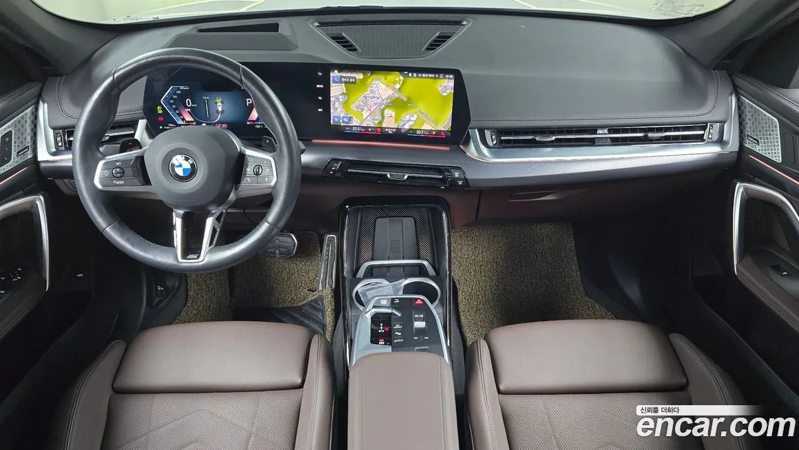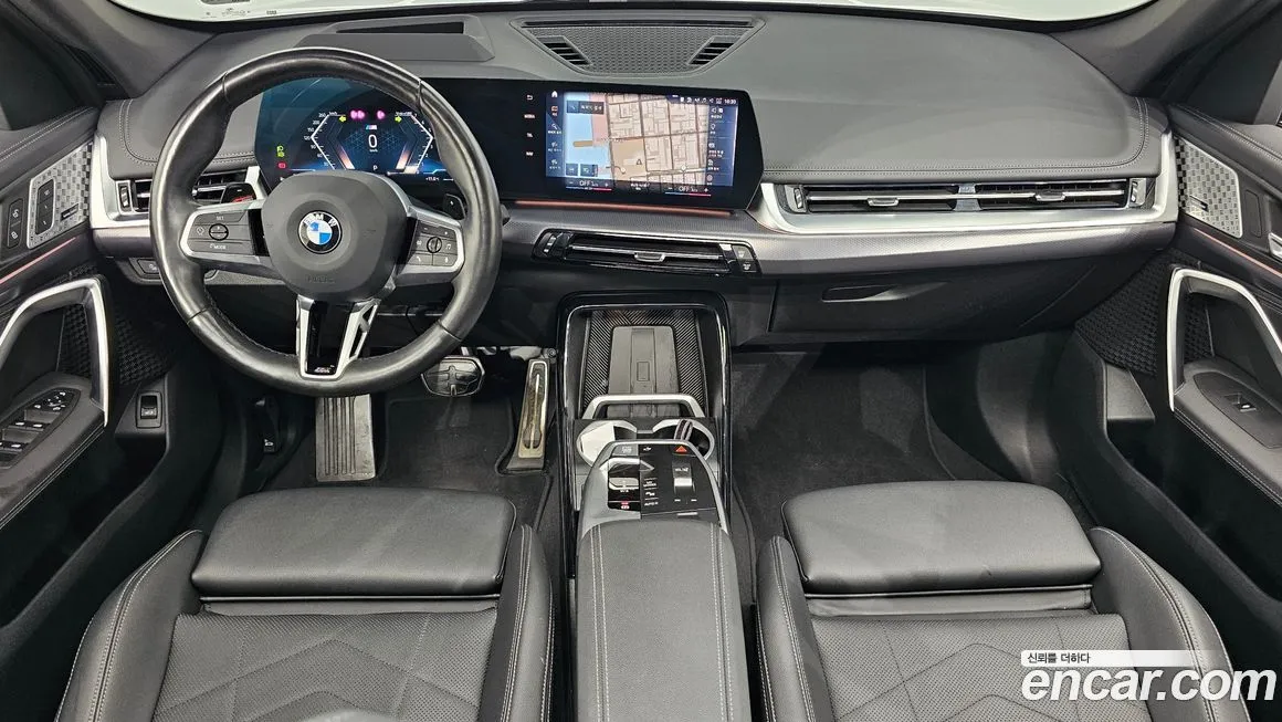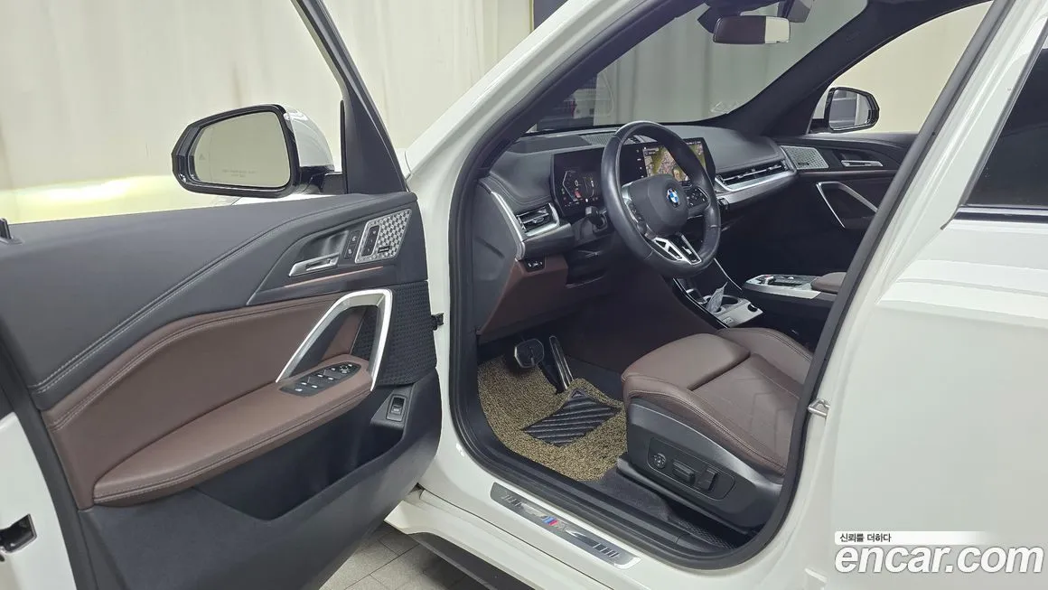 Версия M Sport выделяется на фоне базовых комплектаций BMW X1 прежде всего агрессивным внешним оформлением: спортивный аэродинамический обвес, увеличенные воздухозаборники переднего бампера, специфические пороги и диффузор задней части кузова. Интерьер украшен отделкой M Sport с характерной строчкой на руле, спортивными сиденьями с развитой боковой поддержкой и вставками из алюминия или углеродного волокна в зависимости от выбранного пакета. Мультимедийная система BMW iDrive последнего поколения с изогнутым дисплеем (Curved Display) обеспечивает доступ к навигации, мультимедиа и настройкам автомобиля через сенсорный экран и физические кнопки. В комплектацию для корейского рынка, как правило, входит беспроводная зарядка смартфона, поддержка Apple CarPlay и Android Auto. Система помощи водителю включает адаптивный круиз-контроль (ACC), систему удержания в полосе (Lane Keeping Assist) и предупреждение о столкновении с функцией автоматического торможения. Светодиодная оптика (LED) устанавливается в качестве стандартного оборудования, а в ряде версий доступна лазерная оптика (Laser Light) в качестве опции. Панорамный люк (Panoramic Roof) доступен как опция, расширяющая ощущение пространства в салоне. Колёсные диски увеличенного диаметра с характерным для M Sport дизайном завершают спортивный облик автомобиля.