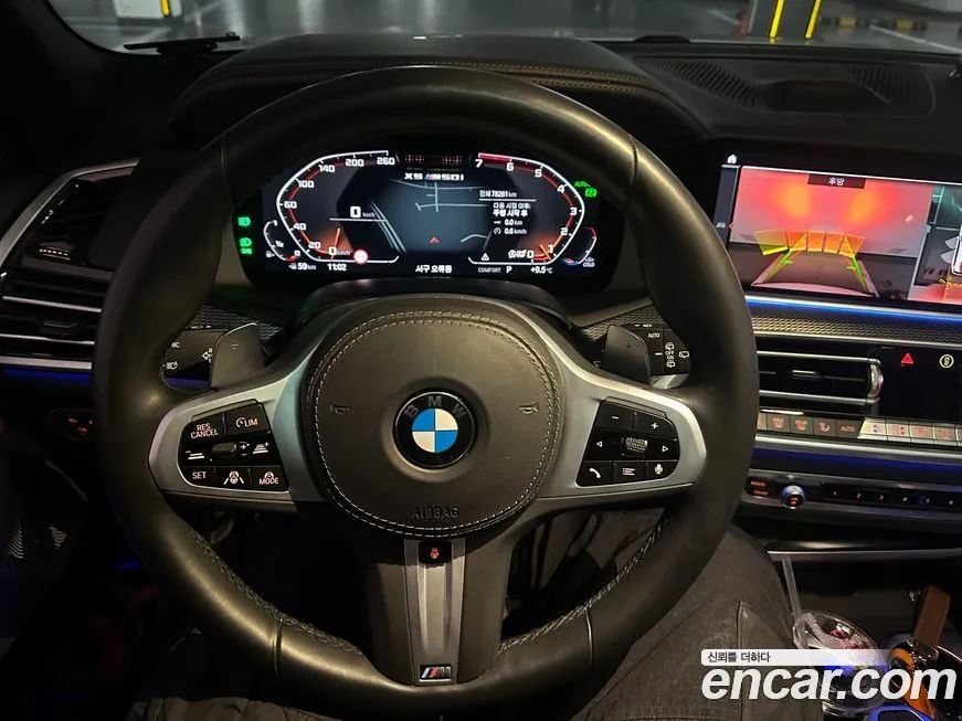 BMW X5 M50i для корейского рынка поставляется с богатым стандартным оснащением, характерным для спортивной линейки M Performance. Экстерьер выделяется специфическими элементами аэродинамики: увеличенными воздухозаборниками, спойлером на крышке багажника и выпускной системой с четырьмя патрубками в чёрном хроме. Интерьер оформлен в спортивном стиле с использованием алькантары и кожи Merino, а рулевое колесо M Sport обшито кожей с характерной прострочкой. Мультимедийная система iDrive последнего поколения с изогнутым дисплеем обеспечивает удобный доступ к навигации, развлекательным функциям и настройкам автомобиля. Панорамная стеклянная крыша Sky Lounge с подсветкой создаёт ощущение простора в салоне. Стандартно предусмотрены вентиляция и подогрев передних сидений, а также подогрев задних сидений и руля. Система помощи при парковке с камерами кругового обзора (Surround View) упрощает манёвры в стеснённых условиях. Комплекс активной безопасности включает адаптивный круиз-контроль (ACC), систему предотвращения столкновений с автоматическим торможением, мониторинг слепых зон (Blind Spot Monitoring) и систему удержания в полосе (Lane Keeping Assistant).