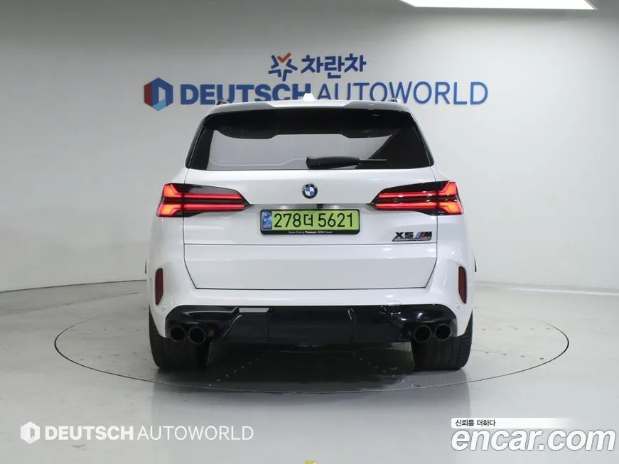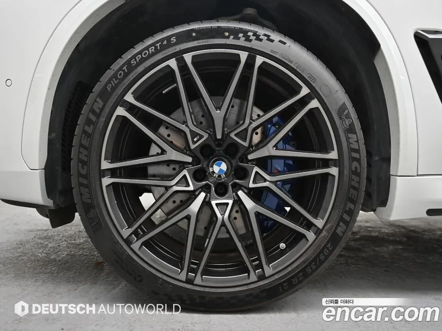 BMW X5M 4.4 Бензин Полный привод Competition (4.4 Gasoline AWD Competition) отличается от стандартной версии X5M прежде всего расширенным набором спортивных элементов оснащения. Версия Competition включает эксклюзивные настройки подвески, системы стабилизации и рулевого управления, обеспечивающие более острую реакцию на действия водителя. Интерьер оформлен в спортивном стиле: спортивные сиденья M с развитой боковой поддержкой обтянуты натуральной кожей Merino, на выбор доступны несколько вариантов отделки. Мультимедийная система iDrive последнего поколения управляется через изогнутый дисплей, объединяющий приборную панель и центральный экран. Система навигации адаптирована для корейского рынка и включает актуальные карты страны. Панорамная стеклянная крыша с электроприводом входит в стандартное оснащение версии Competition. Система аудио Harman Kardon или опциональная Bowers & Wilkins обеспечивает высококачественное звучание в салоне. Комплекс активных систем безопасности включает адаптивный круиз-контроль (ACC), систему предупреждения о столкновении с функцией автоматического торможения, систему контроля полосы движения и систему мониторинга слепых зон. Внешне версия Competition выделяется матовыми чёрными декоративными элементами вместо хромированных, более агрессивными воздухозаборниками и эксклюзивными лёгкосплавными колёсными дисками диаметром 21 или 22 дюйма.