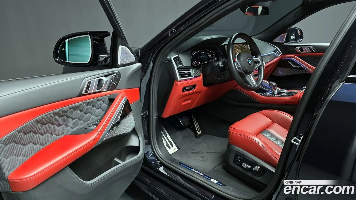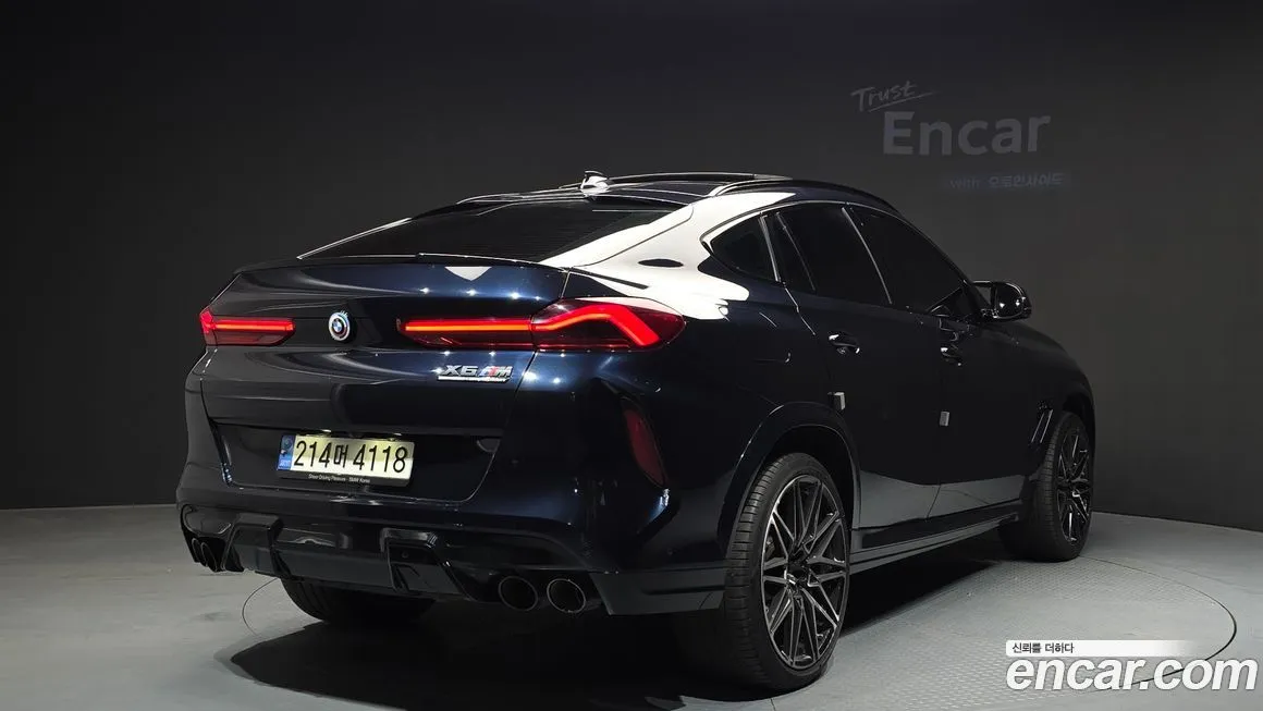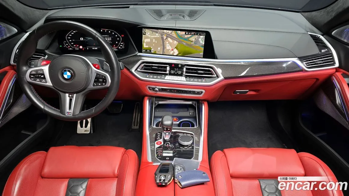 BMW X6M 4.4 Бензин Полный привод Competition (4.4 Gasoline AWD Competition) поставляется с расширенным набором оснащения, выделяющим её среди стандартных версий X6M. Внешне версия Competition отличается эксклюзивными 22-дюймовыми кованными дисками M, более агрессивным аэродинамическим обвесом и хромированными насадками выхлопной системы. Интерьер отделывается кожей Merino с контрастной прострочкой, спортивными сиденьями M с развитой боковой поддержкой и функцией вентиляции. Система мультимедиа включает фирменный интерфейс iDrive последнего поколения с изогнутым дисплеем и поддержкой беспроводного подключения смартфонов. В стандартное оснащение входит панорамный стеклянный люк, система кругового обзора с разрешением высокой чёткости (HD), проекционный дисплей (Head-Up Display) и премиальная аудиосистема Bowers & Wilkins. Система помощи водителю включает адаптивный круиз-контроль (ACC), систему удержания в полосе (Lane Keeping Assist), предупреждение о столкновении с автоматическим экстренным торможением и систему ночного видения (Night Vision). Светодиодная оптика (LED) с лазерными фарами (Laser Light) обеспечивает дальность освещения до 600 метров, что является стандартом для данной версии на корейском рынке. Версия Competition также получает эксклюзивную отделку элементов интерьера в чёрный цвет High Gloss вместо хрома, что подчёркивает спортивный характер автомобиля.