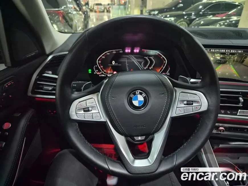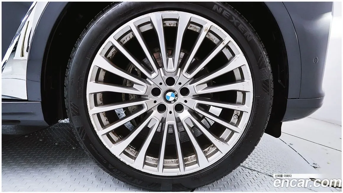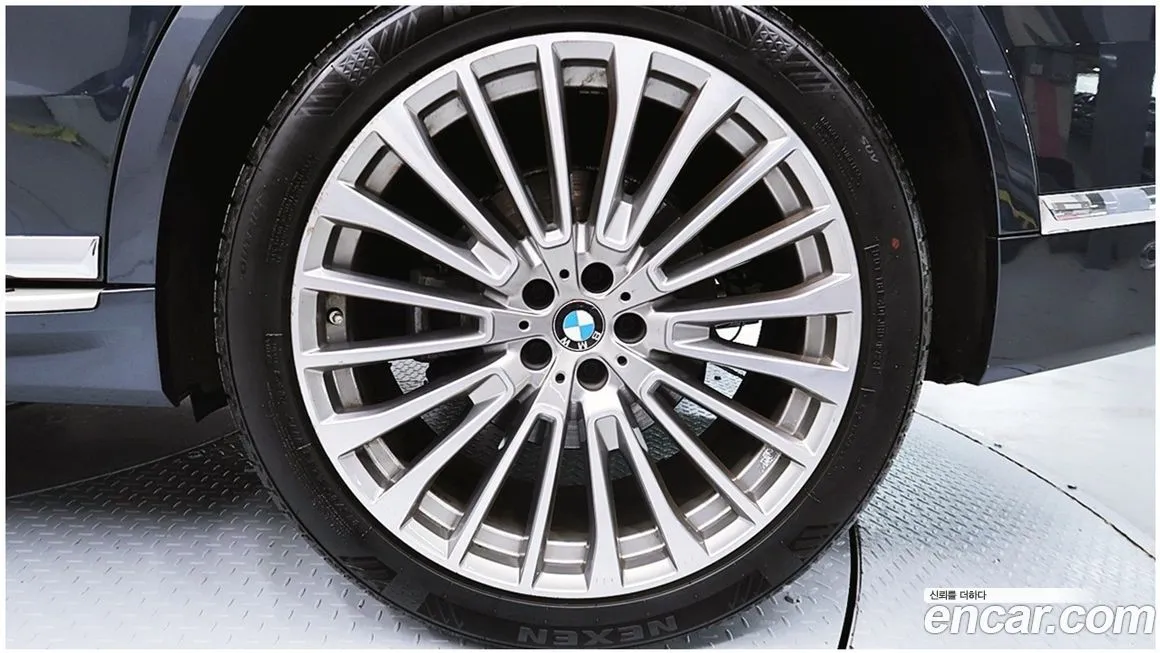 В основе версии БМВ Икс7 хДрайв 40i (BMW X7 xDrive 40i) лежит рядный 6-цилиндровый двигатель Б58 (B58) с турбонаддувом объёмом 3.0 литра, обеспечивающий в зависимости от рынка и года выпуска мощность в диапазоне от 340 до 380 лошадиных сил. Этот двигатель хорошо зарекомендовал себя по всему миру благодаря сочетанию динамики и относительной надёжности. Крутящий момент двигателя позволяет уверенно разгонять крупный кузов внедорожника (SUV) до 100 км/ч приблизительно за 5,8-6,1 секунды в зависимости от года выпуска и конфигурации. Трансмиссия представлена 8-ступенчатым автоматом (8-Speed Steptronic) с плавными переключениями и возможностью ручного управления через подрулевые лепестки. Полный привод АВД (xDrive) с интеллектуальным распределением тяги между осями обеспечивает уверенное поведение на скользком покрытии и при движении по грунтовым дорогам. Подвеска - пневматическая адаптивная (Adaptive Air Suspension), что позволяет регулировать клиренс в зависимости от режима движения: от комфортного крейсерского до внедорожного. Дорожный просвет в стандартном положении составляет около 200 мм, в поднятом - до 240 мм в зависимости от настроек. Габариты БМВ Икс7 (BMW X7) соответствуют классу полноразмерных внедорожников (SUV): длина превышает 5 100 мм, ширина - около 2 000 мм, высота - порядка 1 800 мм. Колёсная база составляет более 3 100 мм, что напрямую обеспечивает просторный второй и третий ряды сидений. Расход топлива в смешанном цикле у версии хДрайв 40и (xDrive 40i) составляет ориентировочно 10,5-12,5 литра на 100 км в зависимости от стиля езды, нагрузки и дорожных условий. Объём топливного бака - около 83-85 литров, что обеспечивает значительный запас хода. Тормозная система оснащена вентилируемыми дисками большого диаметра на всех осях. Система управления динамикой включает стабилизацию ДСК (DSC), антипробуксовочную систему ДТК (DTC) и ряд вспомогательных функций активной безопасности. Колёсные диски для корейского рынка в данной версии, как правило, предлагаются размером от 21 до 22 дюймов в зависимости от года выпуска и опционального оснащения.