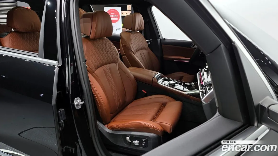Версия БМВ Икс7 иксДрайв 40и М Спорт 6СТР (BMW X7 xDrive 40i M Sport 6STR) для Кореи оснащается спортивным пакетом М Спорт (M Sport), который включает уникальный бампер с расширенными воздухозаборниками, боковые пороги и диффузор в спортивном стиле, а также колёсные диски М (M) увеличенного диаметра. Интерьер выполнен с использованием высококачественной кожи Мерино (Merino) с контрастной прошивкой и вставками из декоративного алюминия или дерева на выбор. Цифровая приборная панель и центральный дисплей системы иДрайв (iDrive) с диагональю около 14 дюймов формируют единое информационное пространство для водителя. Шестиместная конфигурация 6СТР (6STR) предполагает два раздельных капитанских кресла второго ряда с функцией электрорегулировки, подогрева и вентиляции. Третий ряд сидений складывается в пол электрически, освобождая значительный объём багажного отделения. В стандартное оснащение корейской версии входят панорамная стеклянная крыша Панорама (Panorama), система кругового обзора (Surround View), адаптивный круиз-контроль (Adaptive Cruise Control) с функцией стоп-энд-гоу (Stop-and-Go), а также система помощи при движении по полосе. Аудиосистема Бауэрс энд Уилкинс (Bowers & Wilkins) с числом динамиков более 20 является характерной особенностью топовых версий для корейского рынка. Бесключевой доступ и запуск двигателя, беспроводная зарядка смартфона и система удалённого управления через мобильное приложение также входят в пакет стандартного оснащения.