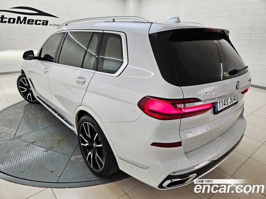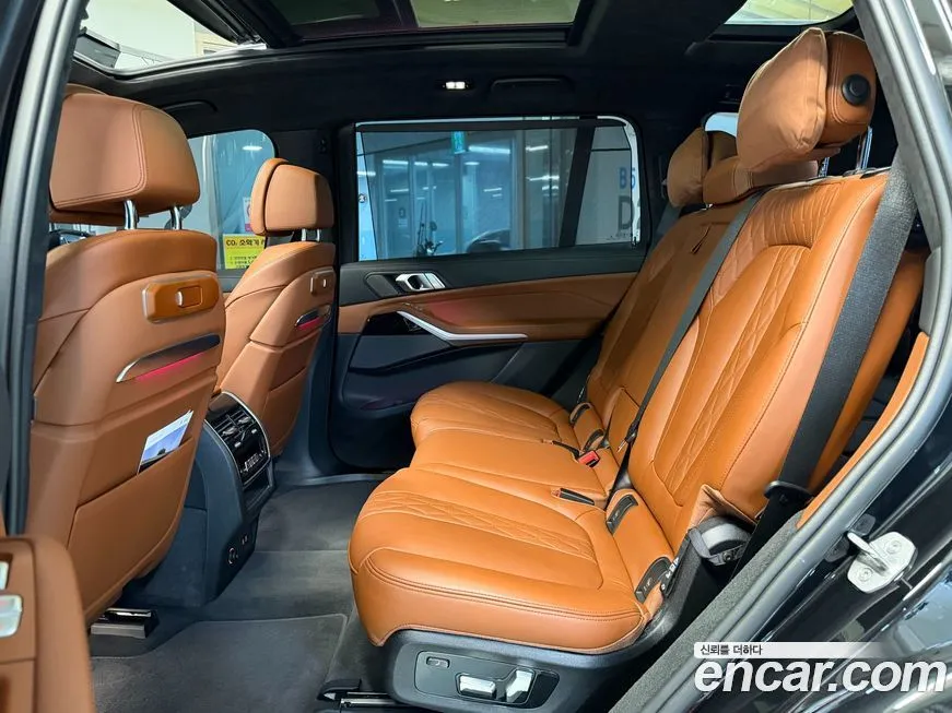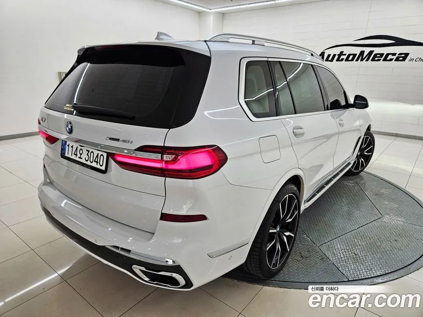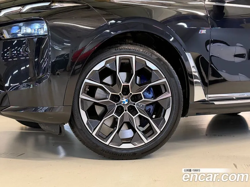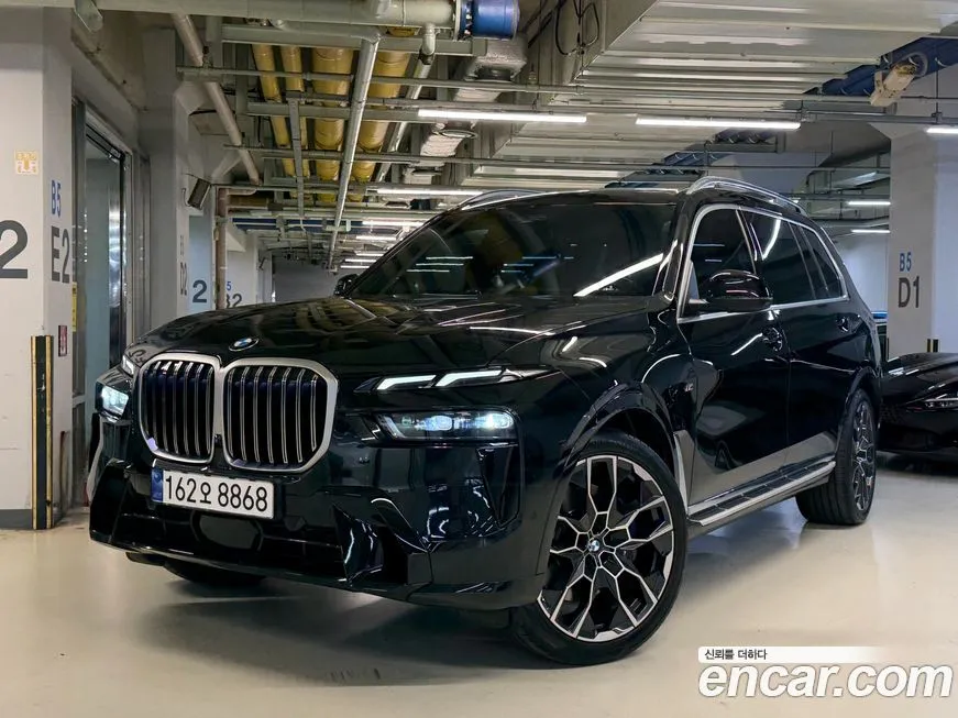 Версия БМВ Икс7 иксДрайв 40ай М Спорт 7 мест (BMW X7 xDrive 40i M Sport 7STR) для корейского рынка комплектуется полным набором технологий, характерных для флагманского сегмента марки. Пакет М Спорт (M Sport) включает специфический аэродинамический обвес кузова, спортивные бамперы с более выраженными воздуховодами, характерные 22-дюймовые колёсные диски в стиле М (M), а также спортивные сиденья с улучшенной боковой поддержкой. Интерьер оснащён изогнутым дисплеем Курвд Дисплей (Curved Display) диагональю около 14,9 дюйма, объединяющим приборную панель и центральный экран мультимедийной системы в единый блок. Операционная система автомобиля работает на платформе БМВ ОС 8 (BMW OS 8) с поддержкой беспроводного подключения Эппл КарПлей (Apple CarPlay) и Андроид Авто (Android Auto). Система звука от Бауэрс энд Уилкинс (Bowers & Wilkins) с числом динамиков до 20 штук является фирменной особенностью топовых комплектаций БМВ Икс7 (BMW X7) на корейском рынке. Семиместная конфигурация (7STR) предполагает складывающийся третий ряд сидений с электроприводом, что обеспечивает удобное управление трансформацией салона. Система помощи водителю включает адаптивный круиз-контроль с функцией движения в пробке, систему удержания в полосе, ассистент обгона и систему предупреждения о столкновении. Панорамная стеклянная крыша СкайЛаундж (Sky Lounge) с подсветкой является стандартным оснащением для данной версии, создавая особую атмосферу в салоне.