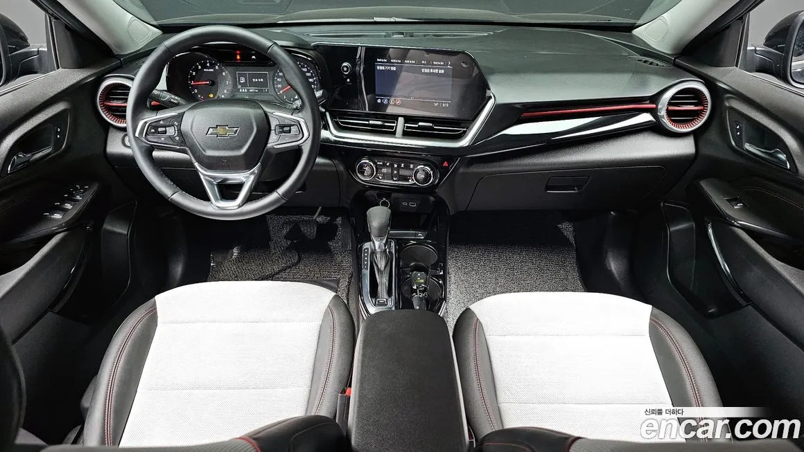 Chevrolet Trax 1.2 Red Line отличается от стандартных версий прежде всего спортивным внешним оформлением: красные акценты на кузове, специфические элементы бампера, уникальные колёсные диски и надписи Red Line подчёркивают характер этой комплектации. Светодиодная оптика (LED) в передней и задней части кузова является одной из ключевых особенностей данной версии, обеспечивая хорошую видимость и современный внешний вид. В салоне предусмотрена мультимедийная система с сенсорным экраном, поддерживающая беспроводное подключение смартфона через протоколы Apple CarPlay и Android Auto. Комплектация включает климат-контроль, обогрев передних сидений и руля, что особенно актуально для корейского климата. Система помощи при парковке с камерой заднего вида входит в стандартный набор оснащения Red Line. Пакет активной безопасности включает систему экстренного автоторможения, систему удержания в полосе движения, а также адаптивный круиз-контроль (ACC) - набор технологий, нетипичный для базовых комплектаций данного класса. Интерьер выполнен с использованием материалов, характерных для среднего ценового сегмента: комбинация мягкого пластика на видных поверхностях и жёсткого - в нижней части салона. Посадочных мест пять, объём багажного отделения соответствует классу субкомпактных кроссоверов.