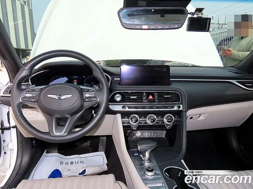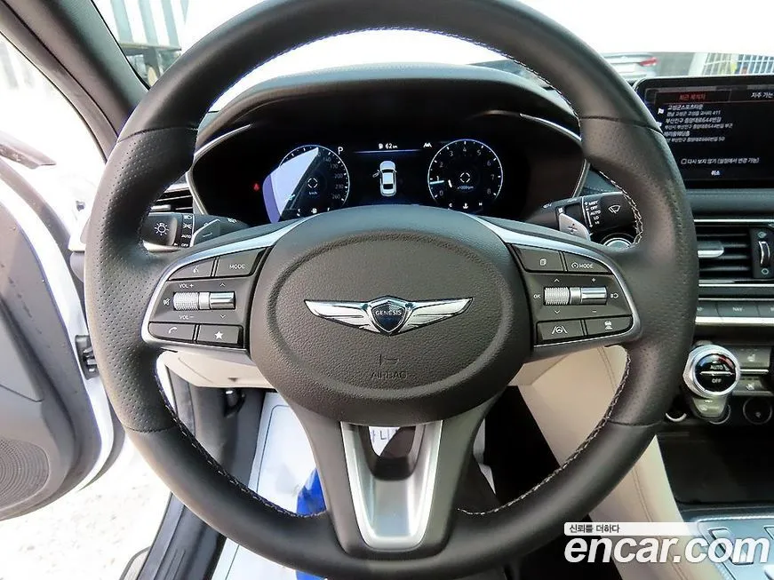 Версия Дженезис G70 Бензин 2.0 Турбо Передний привод (Genesis G70 Gasoline 2.0T 2WD) на корейском рынке предлагается в нескольких уровнях оснащения, от базового до топового. Даже в стандартном исполнении автомобиль включает мультимедийную систему с сенсорным экраном диагональю около 8 дюймов, поддержку беспроводного подключения смартфона (Андроид Авто / Android Auto и Эпл Карплей / Apple CarPlay), а также систему навигации. Интерьер оформлен в духе корейского премиума: используются мягкие материалы отделки, кожаная обивка сидений и металлический декор вставок. Передние сиденья оснащены подогревом и вентиляцией, а рулевое колесо - подогревом. В более высоких уровнях оснащения доступна аудиосистема Лексикон (Lexicon) с несколькими динамиками, обеспечивающая высококачественное звучание. Система активной безопасности включает автоматическое экстренное торможение (ЭТС / AEB), удержание в полосе (УПД / LKA), адаптивный круиз-контроль (АКК / ACC) и мониторинг слепых зон (МСЗ / BSM). Климат-контроль - двухзонный автоматический, с возможностью раздельной настройки температуры для водителя и переднего пассажира. Освещение - полностью светодиодное (СИД / LED) как спереди, так и сзади, что подчёркивает современный облик автомобиля. В зависимости от уровня комплектации доступны панорамная крыша, проекционный дисплей (ХАД / HUD) и система кругового обзора (СКО / AVM).