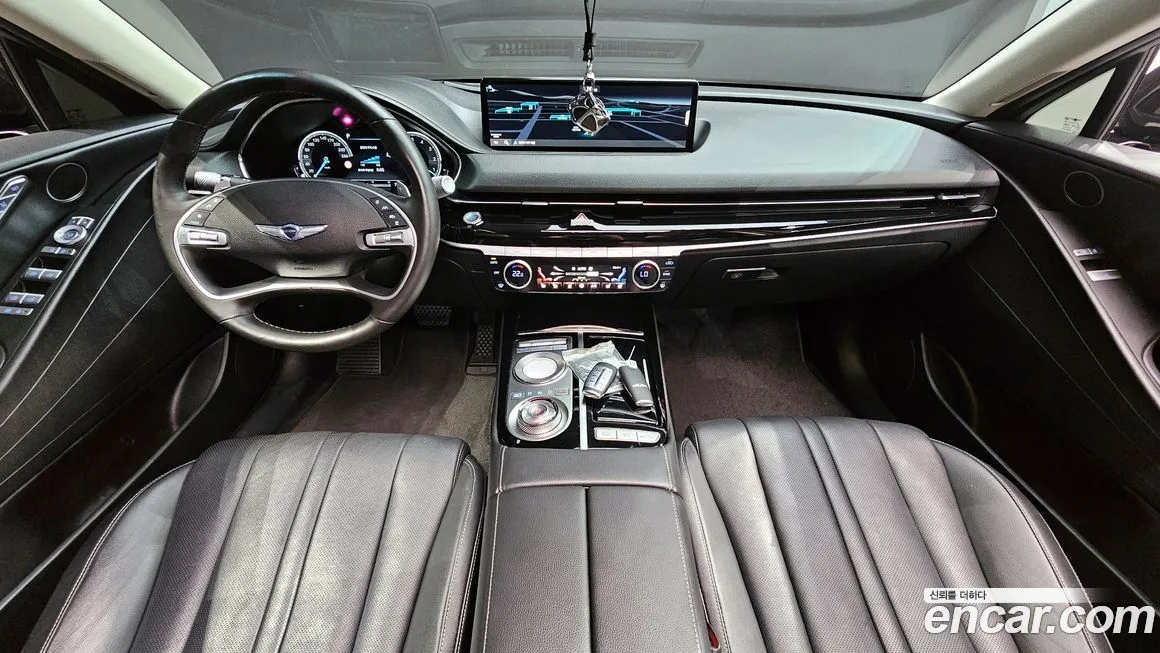 Версия Дженезис (Genesis) G80 3.5 Бензин Турбо переднеприводная (Gasoline 3.5 Turbo 2WD) для корейского рынка традиционно предлагается в нескольких уровнях оснащения - от базового до топового Сигначер (Signature). В стандартное оснащение входит цифровая приборная панель диагональю 12.3 дюйма, центральный дисплей мультимедийной системы и полностью светодиодная (LED) оптика с фирменной сигнатурой дневных ходовых огней в виде «крыльев». Система кругового обзора (Around View Monitor), адаптивный круиз-контроль, система удержания в полосе движения и система предотвращения столкновений входят в перечень стандартных ассистентов. Кожаная отделка салона, подогрев и вентиляция передних сидений, а также подогрев рулевого колеса предусмотрены в большинстве комплектаций. Аудиосистема премиального уровня от Лексикон (Lexicon) с несколькими динамиками входит в топовые версии оснащения. Панорамный люк, электрорегулировка задних сидений с функцией релаксации и массажа, а также четырёхзонный климат-контроль доступны в расширенных пакетах оснащения. Система бесключевого доступа, электрические приводы дверей с мягким доводчиком и автоматически складывающиеся зеркала заднего вида дополняют общий образ премиального автомобиля. Коннектор Айкар плей (Apple CarPlay) и Андроид Авто (Android Auto) поддерживаются в рамках мультимедийной системы, обеспечивая интеграцию со смартфонами.