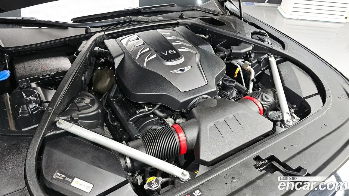 В основе версии Генезис (Genesis) G90 5.0 АВД (AWD) лежит атмосферный бензиновый двигатель объёмом 5.0 литра с конфигурацией восемь цилиндров в форме буквы V — V8 (V8 GDI). Этот агрегат развивает мощность в диапазоне около 425 лошадиных сил и обеспечивает внушительный крутящий момент, что гарантирует уверенную и плавную тягу на всём диапазоне оборотов. Разгон до 100 км/ч занимает, по данным производителя, порядка 5 секунд, что для представительского седана подобных габаритов является достойным показателем. Трансмиссия представлена восьмиступенчатым автоматом (8AT), обеспечивающим плавные и своевременные переключения передач в режимах как комфортной езды, так и динамичного ускорения. Полный привод АВД (AWD) с интеллектуальным распределением момента между осями входит в стандартное оснащение данной версии, обеспечивая стабильность и управляемость на скользком покрытии. Расход топлива у атмосферного V8 (V8) в городском цикле составляет в среднем от 15 до 17 литров на 100 км, на трассе — около 10–12 литров, что соответствует классу и объёму двигателя. Длина автомобиля во втором поколении превышает 5,2 метра, что делает G90 одним из наиболее протяжённых седанов в классе. Колёсная база обеспечивает исключительный простор в салоне, прежде всего на заднем ряду, ориентированном на пассажиров-ВИП (VIP). Дорожный просвет у G90 составляет порядка 150–160 мм в зависимости от комплектации и рынка, что является типичным для представительских седанов. Подвеска — многорычажная на обеих осях с адаптивными амортизаторами, обеспечивающими баланс между комфортом и управляемостью. Система активного шумоподавления (АНС / ANC) в сочетании с многослойным остеклением и виброизоляцией кузова создаёт акустический комфорт, сопоставимый с эталонами класса. Тормозная система оснащена вентилируемыми дисками большого диаметра и системой электронного контроля тормозных усилий. Рулевое управление — электроусилитель с переменным передаточным отношением, адаптирующийся к скорости движения.