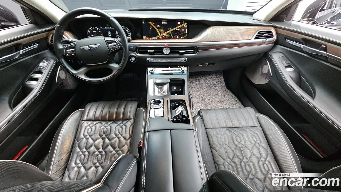 Версия Генезис (Genesis) G90 5.0 АВД (AWD) для корейского рынка традиционно предлагается в богатом оснащении, соответствующем флагманскому статусу. Интерьер отделывается натуральной кожей премиального качества, деревянными вставками из ценных пород и металлическими элементами декора, формируя атмосферу, характерную для лучших представителей класса. Мультимедийная система включает крупный сенсорный экран с поддержкой беспроводного подключения смартфона (Bluetooth, Ви-Фай / Wi-Fi) и навигацией. Аудиосистема от известного акустического бренда обеспечивает концертное качество звука с множеством динамиков, размещённых по всему салону. В стандартное оснащение входят вентиляция, подогрев и массаж передних и задних сидений, а также подогрев рулевого колеса. Панорамная стеклянная крыша с электроприводом и шторкой расширяет пространство визуально и обеспечивает естественное освещение. Система помощи водителю второго уровня автоматизации включает адаптивный круиз-контроль, удержание в полосе, автоматическое торможение перед препятствием и систему распознавания дорожных знаков. Внешнее освещение полностью светодиодное (LED) с адаптивными фарами, автоматически поворачивающимися вслед за рулём.