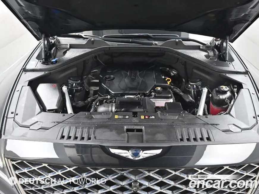 В основе версии Дженезис ДжиВи80 2.5Т Бензин АВД (Genesis GV80 2.5T Gasoline AWD) лежит четырёхцилиндровый турбированный двигатель объёмом 2.5 литра с системой непосредственного впрыска ГДИ (GDI), развивающий порядка 300 лошадиных сил и около 422 Нм крутящего момента в зависимости от рынка и года выпуска. Агрегат оснащён технологией изменения фаз газораспределения на обоих распределительных валах, что обеспечивает хорошую тягу как на низких, так и на высоких оборотах. Трансмиссия представлена восьмиступенчатым автоматом (8AT) с режимом ручного управления при помощи подрулевых лепестков. Полный привод АВД (AWD) реализован через многодисковую муфту подключения задней оси с электронным управлением, позволяющую варьировать распределение тяги между осями в зависимости от дорожных условий. Система полного привода АВД (AWD) в штатном режиме ориентирована преимущественно на задние колёса, что придаёт автомобилю характерный заднеприводный характер управляемости. Разгон с места до 100 км/ч занимает около 6 секунд в зависимости от конфигурации и рынка, что является достойным результатом для полноразмерного внедорожника (SUV) данного класса. Расход топлива в смешанном цикле составляет в среднем от 10 до 12 литров на 100 км в зависимости от стиля езды и дорожных условий - вполне приемлемый показатель для турбированного мотора в паре с полным приводом АВД (AWD) в этом сегменте. Габариты автомобиля соответствуют полноразмерному классу: длина превышает 4900 мм, ширина - около 1975 мм, высота - порядка 1715 мм, колёсная база составляет около 2955 мм. Клиренс ДжиВи80 (GV80) с пневматической подвеской (в зависимости от комплектации) может регулироваться, базовое значение составляет около 200 мм. Подвеска - независимая многорычажная на обеих осях, что обеспечивает плавность хода на уровне лучших представителей сегмента. Объём багажного отделения составляет около 727 литров, что является конкурентоспособным показателем для семиместного или пятиместного внедорожника (SUV) данного класса. Топливный бак вмещает около 71 литра, что обеспечивает приемлемый запас хода на одной заправке. Снаряжённая масса автомобиля в версии АВД (AWD) превышает 2100 кг, что требует учёта при оценке динамических характеристик и расхода топлива.