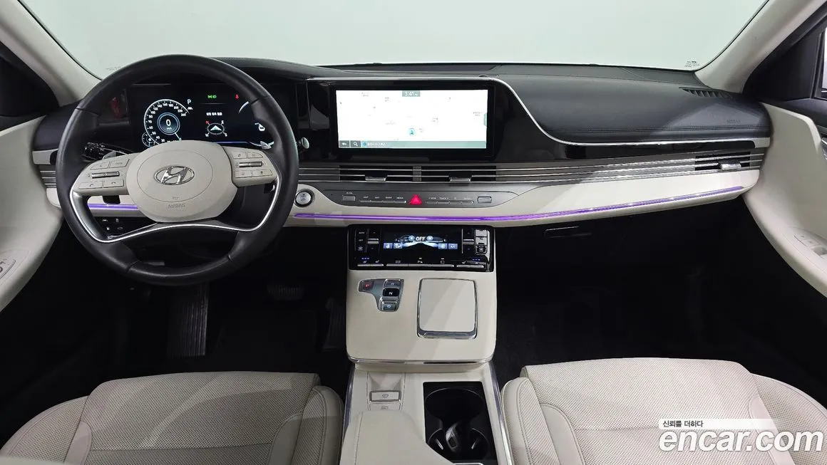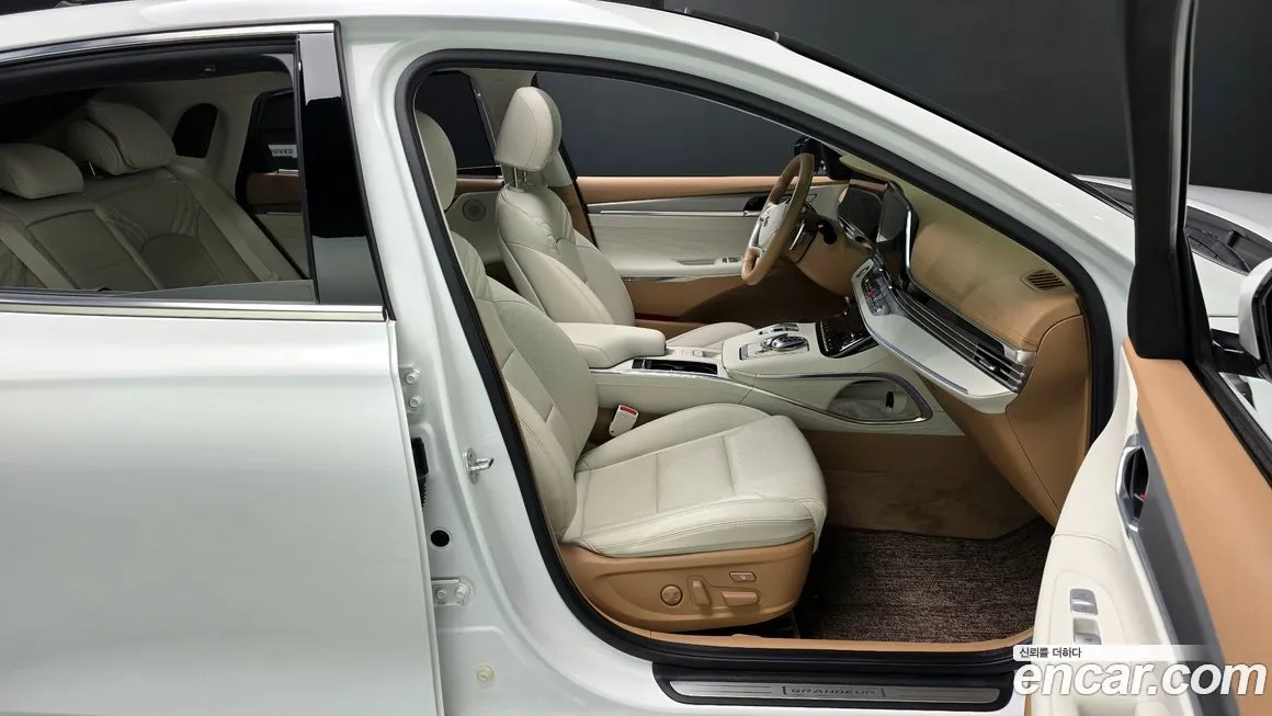 Хёндай Грандер 2.5 (Hyundai Grandeur 2.5) для корейского рынка предлагается в нескольких уровнях оснащения: Премиум (Premium),익스클루시브 Эксклюзив (Exclusive) и Калиграфи (Calligraphy) - топовый вариант с особой отделкой. Даже в базовой комплектации Премиум (Premium) автомобиль оснащён 12.3-дюймовым цифровым приборным кластером (Digital Cluster), мультимедийной системой с сенсорным экраном диагональю 12.3 дюйма, беспроводной зарядкой смартфона, светодиодной оптикой (LED) спереди и сзади, а также панорамной крышей. Система безопасности включает адаптивный круиз-контроль СКК (SCC / Smart Cruise Control), систему удержания в полосе ЛКА (LKA / Lane Keeping Assist), систему предупреждения о столкновении ФЦА (FCA / Forward Collision-Avoidance Assist) и мониторинг слепых зон БСМ (BSM / Blind-Spot Monitoring). Интерьер версии 2.5 в старших комплектациях отделывается натуральной кожей Наппа (Nappa) с перфорацией, а сиденья получают функцию вентиляции и массажа. Аудиосистема в топовых вариантах представлена акустикой Бауэрс энд Уилкинс (Bowers & Wilkins) с несколькими динамиками, обеспечивающей концертное качество звука в салоне. Система навигации адаптирована под корейские карты и интегрирована с облачными сервисами через платформу Хёндай Смарт Сенс (Hyundai SmartSense). Комплектация Калиграфи (Calligraphy) отличается эксклюзивной отделкой, уникальными узорами на обивке, хромированными вставками и особым дизайном колёсных дисков диаметром 19 дюймов.
