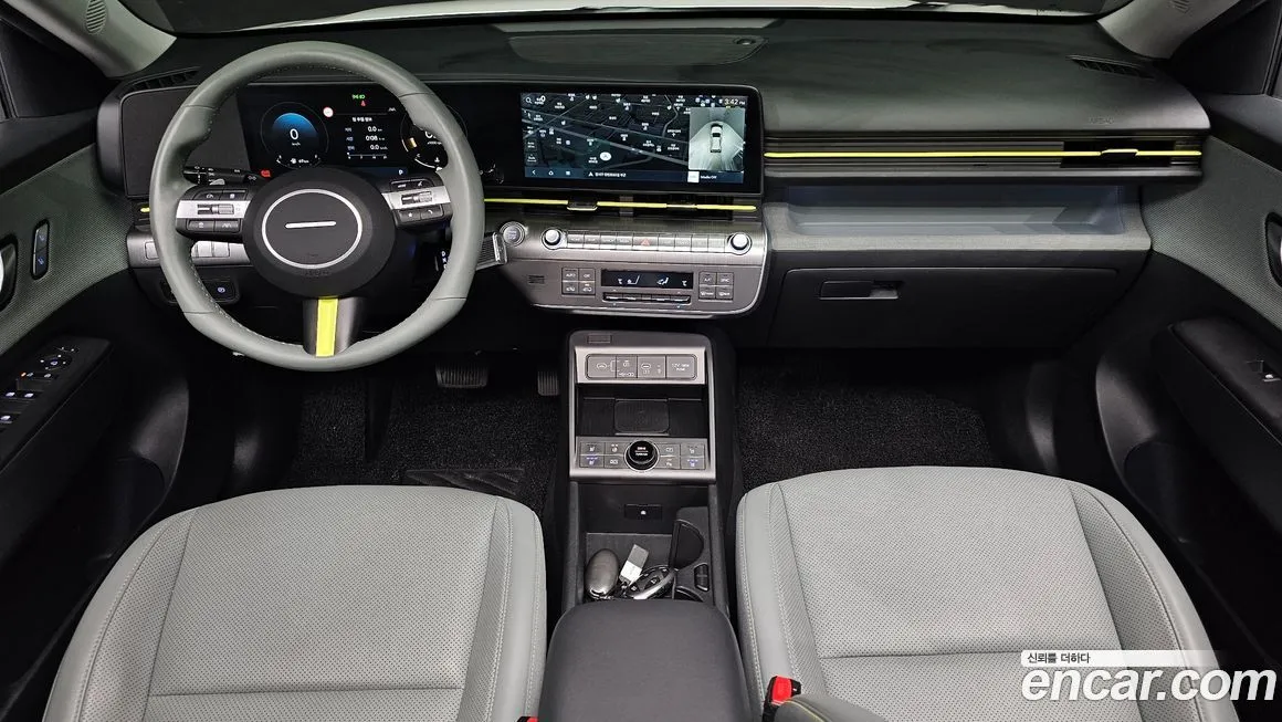 Версия Хёндай Кона (Hyundai Kona) 1.6 Турбо 4ВД (1.6 Turbo 4WD) для корейского рынка традиционно предлагается в топовых или близких к топовым комплектациях - таких как Инсپайр (Inspire) или Прэстиж (Prestige) по местной классификации. В стандартное оснащение входят светодиодные фары (LED) с функцией автоматического переключения дальнего света, цифровая приборная панель с дисплеем диагональю около 10,25 дюйма, а также мультимедийная система с экраном аналогичной диагонали. Система помощи водителю Хёндай СмартСенс (Hyundai SmartSense) включает адаптивный круиз-контроль (АКК / ACC), систему удержания в полосе движения ЛКА (LKA), экстренное автоматическое торможение ФЦА (FCA) и мониторинг слепых зон БСМ (BSM). Климатический комфорт обеспечивается двухзонным климат-контролем, подогревом передних и задних сидений, подогревом рулевого колеса и вентиляцией передних кресел в топовых исполнениях. Панорамный люк (стеклянная крыша) доступен в ряде комплектаций и значительно улучшает ощущение простора в салоне. Беспроводная зарядка смартфонов, поддержка Андроид Авто (Android Auto) и Эппл КарПлэй (Apple CarPlay) входят в стандартное оснащение корейской версии. Система кругового обзора (360-градусная камера) и парктроники спереди и сзади облегчают манёвры в стеснённых условиях. Колёсные диски в зависимости от комплектации варьируются от 17 до 19 дюймов в диаметре.