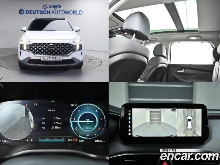 Версия Хёндай Санта Фе Дизель 2.2 4ВД (Hyundai Santa Fe Diesel 2.2 4WD) для корейского рынка традиционно предлагается в нескольких уровнях оснащения - от базового Примиум (Premium) до топового Кэлиграфи (Calligraphy) или аналогичных обозначений в зависимости от года выпуска. Даже в базовых комплектациях автомобиль оснащается мультимедийной системой с сенсорным дисплеем диагональю от 10 дюймов, поддерживающей беспроводное подключение смартфона (Андроид Авто / Android Auto и Эппл КарПлей / Apple CarPlay). Светодиодная оптика (ЛЕД / LED) входит в стандартное оснащение: фары головного света, дневные ходовые огни и задние фонари выполнены на светодиодных (ЛЕД / LED) элементах. Система помощи водителю Хёндай Смарт Сенс (Hyundai SmartSense) включает адаптивный круиз-контроль, систему удержания в полосе, предупреждение о столкновении с автоматическим экстренным торможением и мониторинг слепых зон. В богатых комплектациях доступны панорамный люк, вентиляция и обогрев передних сидений, обогрев задних сидений, проекционный дисплей (ХАД / HUD), система кругового обзора (360 градусов) и премиальная аудиосистема Бозе (Bose) или аналогичная. Цифровая приборная панель (диджитал кластер / digital cluster) входит в оснащение большинства комплектаций для корейского рынка, обеспечивая водителя полной информацией в удобном формате. Безопасность обеспечивается множеством подушек безопасности (до 7-8 штук в зависимости от комплектации), системой стабилизации ЕСП (ESP), антиблокировочной системой тормозов АБС (ABS) и системой помощи при старте на подъёме.