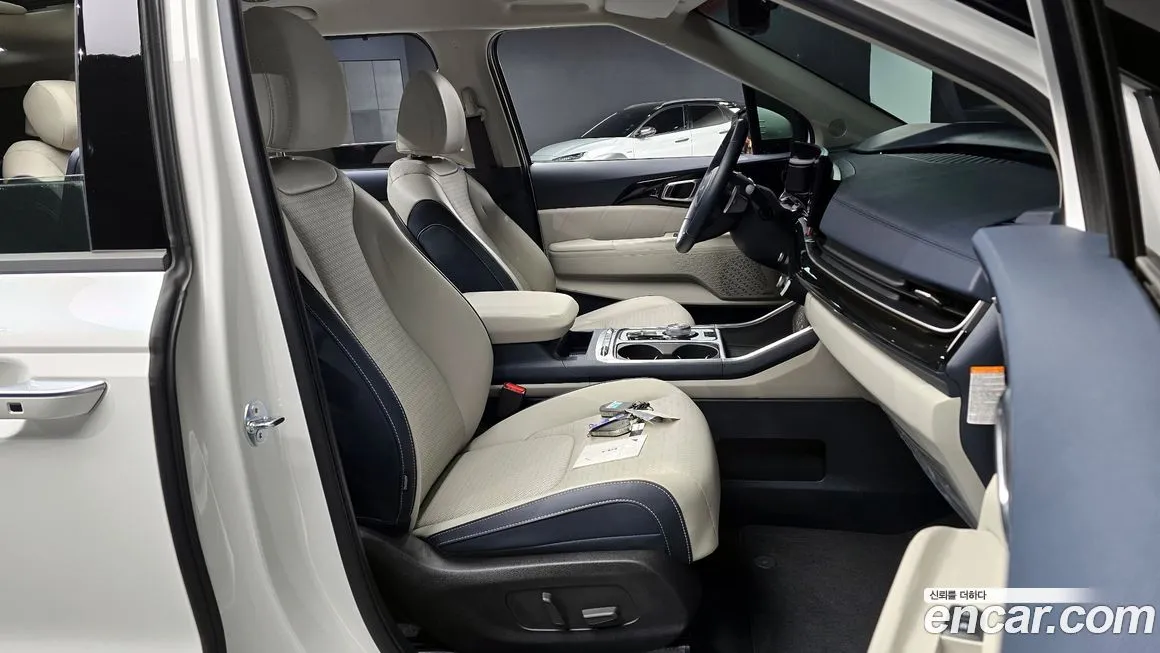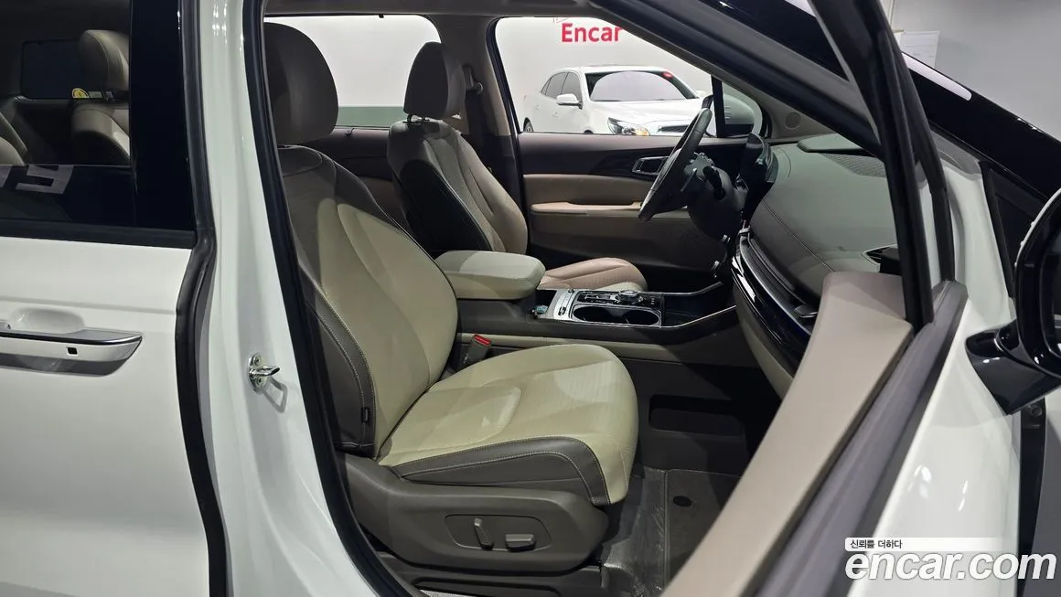 Комплектация Сигначер (Signature) в версии Киа Карнивал ХЕВ 7-Сиитер (Kia Carnival HEV 7-Seater) предполагает максимальный уровень оснащения, доступный для данной модели на корейском рынке. Второй ряд сидений представлен двумя отдельными капитанскими креслами с электрорегулировкой, функцией вентиляции и массажа, что формирует ВИП (VIP) атмосферу в салоне. Информационно-развлекательная система включает крупный сенсорный дисплей с поддержкой беспроводного подключения Эпл КарПлэй (Apple CarPlay) и Андроид Авто (Android Auto), а также цифровую приборную панель. Климатическая система - трёхзонный автоматический климат-контроль с отдельными настройками для каждого ряда. Панорамная стеклянная крыша обеспечивает естественное освещение салона. В оснащение входит светодиодная оптика (LED) спереди и сзади, включая адаптивные фары с автоматическим переключением дальнего и ближнего света. Комплекс активной безопасности включает систему предупреждения о столкновении с автоматическим экстренным торможением, систему удержания в полосе, адаптивный круиз-контроль и систему мониторинга слепых зон. Крепления Изофикс (Isofix) предусмотрены на втором и третьем рядах для установки детских кресел. Электрические сдвижные двери с функцией бесконтактного открытия и электрический привод пятой двери обеспечивают удобство посадки и высадки пассажиров.