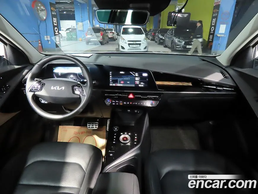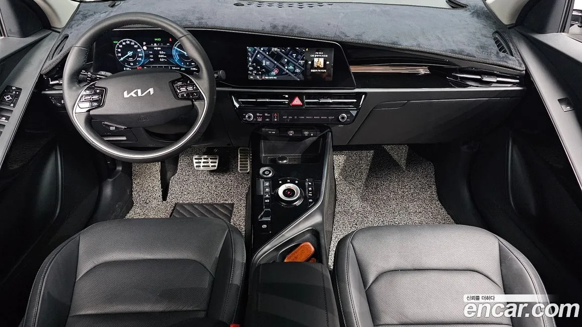 Версия Эл Ёрт (El Earth) выделяется среди других комплектаций Ниро Эл (Niro EV) прежде всего применением экологичных материалов в отделке интерьера: обивка сидений выполнена из переработанных пластиковых бутылок, а декоративные панели содержат компоненты из биоматериалов. Приборная панель оснащена цифровым кластером и центральным дисплеем мультимедийной системы с поддержкой беспроводного подключения Эпл КарПлей (Apple CarPlay) и Андроид Авто (Android Auto). В стандартное оснащение входит климат-контроль, подогрев передних сидений и рулевого колеса, что особенно актуально в условиях корейских зим. Версия Ёрт (Earth) также предлагает панорамную стеклянную крышу, обеспечивающую ощущение простора в салоне. Система помощи водителю включает адаптивный круиз-контроль, систему удержания в полосе, мониторинг слепых зон и автоматическое экстренное торможение - всё это входит в пакет помощи при движении ДрайвВайз (DriveWise). Отличительной чертой именно версии Ёрт (Earth) является особая цветовая гамма кузова с акцентами, подчёркивающими экологическую направленность модели, а также специальные 17-дюймовые колёсные диски аэродинамической формы для снижения сопротивления воздуха. Зарядный кабель и домашнее зарядное устройство входят в стандартный комплект поставки для корейского рынка.