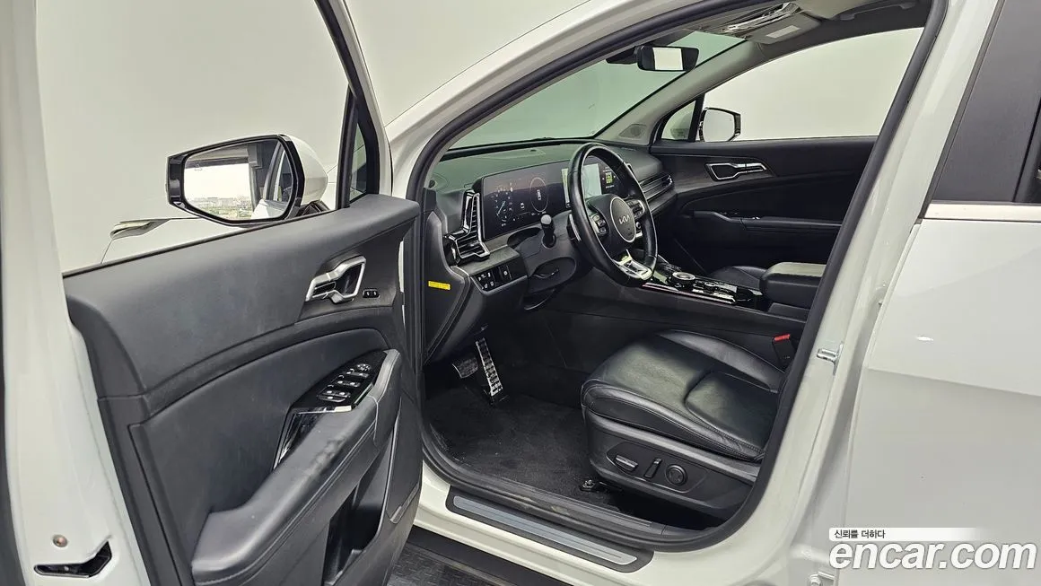 Комплектация Сигначер (Signature) в версии Киа Спортейдж ХЕВ 2ВД (Kia Sportage HEV 2WD) для корейского рынка предполагает максимально богатое оснащение из всей линейки. Интерьер отличается использованием качественных материалов отделки: натуральная кожа на сиденьях, мягкий пластик на панелях дверей и приборной панели, декоративные вставки под металл и дерево. Центральная консоль оснащена изогнутым двойным дисплеем, объединяющим цифровую приборную панель и сенсорный экран мультимедийной системы с диагональю около 12.3 дюйма каждый. Система мультимедиа поддерживает беспроводное подключение Эппл КарПлей (Apple CarPlay) и Андроид Авто (Android Auto), а также встроенную навигацию с онлайн-обновлениями карт. В комплектацию входит панорамная стеклянная крыша с электроприводом, многозонная климатическая система, вентиляция и подогрев передних сидений, а также подогрев задних сидений и руля. Пакет активных систем безопасности включает автономное экстренное торможение, систему удержания в полосе движения, адаптивный круиз-контроль и систему мониторинга слепых зон. Аудиосистема от Боз (Bose) с несколькими динамиками обеспечивает высококачественное звучание. Бесключевой доступ и запуск двигателя кнопкой, электрорегулировка и память положений водительского кресла, а также камера кругового обзора дополняют картину флагманского оснащения. Светодиодная оптика (LED) спереди и сзади, включая адаптивные фары дальнего света, входит в стандартное оснащение данной версии.