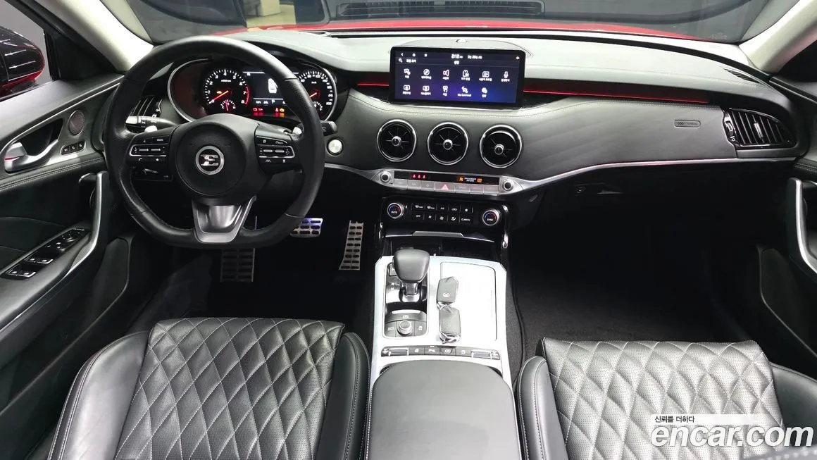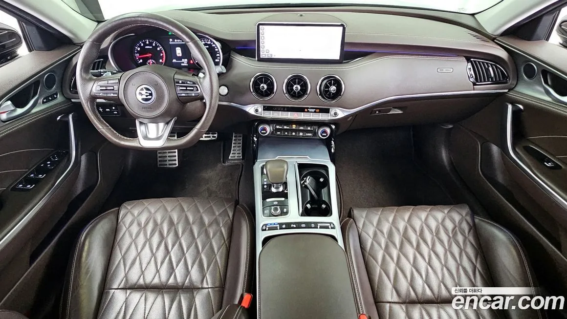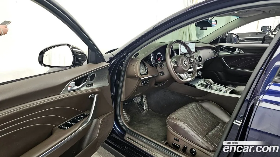 Комплектация Мастерс (Masters) в рамках Киа Стингер (Kia Stinger) для корейского рынка представляет собой топовое или близкое к топовому оснащение, включающее весь спектр технологий, доступных для данной модели. Интерьер отличается применением натуральной кожи наппа (Nappa) на сиденьях, руле и отдельных элементах отделки, а также вставками из декоративных материалов под карбон или дерево в зависимости от года выпуска. Мультимедийная система включает сенсорный экран диагональю 8 или 10.25 дюйма с поддержкой беспроводного подключения Эппл КарПлей (Apple CarPlay) и Андроид Авто (Android Auto). Аудиосистема премиального класса Бауэрс энд Уилкинс (Bowers & Wilkins) или Харман Кардон (Harman Kardon) в зависимости от года выпуска обеспечивает высокое качество звука. Система навигации адаптирована под корейские карты и обновляется через официальные каналы дилерской сети. Среди активных систем безопасности присутствует комплекс помощи водителю ДрайвВайз (DriveWise), включающий адаптивный круиз-контроль (SCC), систему удержания в полосе (LKA), предупреждение о столкновении (FCA) и мониторинг слепых зон (BCW). Передние и задние сиденья оснащены функцией подогрева, передние кресла дополнительно имеют функцию вентиляции и электрорегулировку с памятью положений. Панорамный люк с электроприводом и система бесключевого доступа с кнопкой запуска двигателя входят в стандартное оснащение версии Мастерс (Masters).