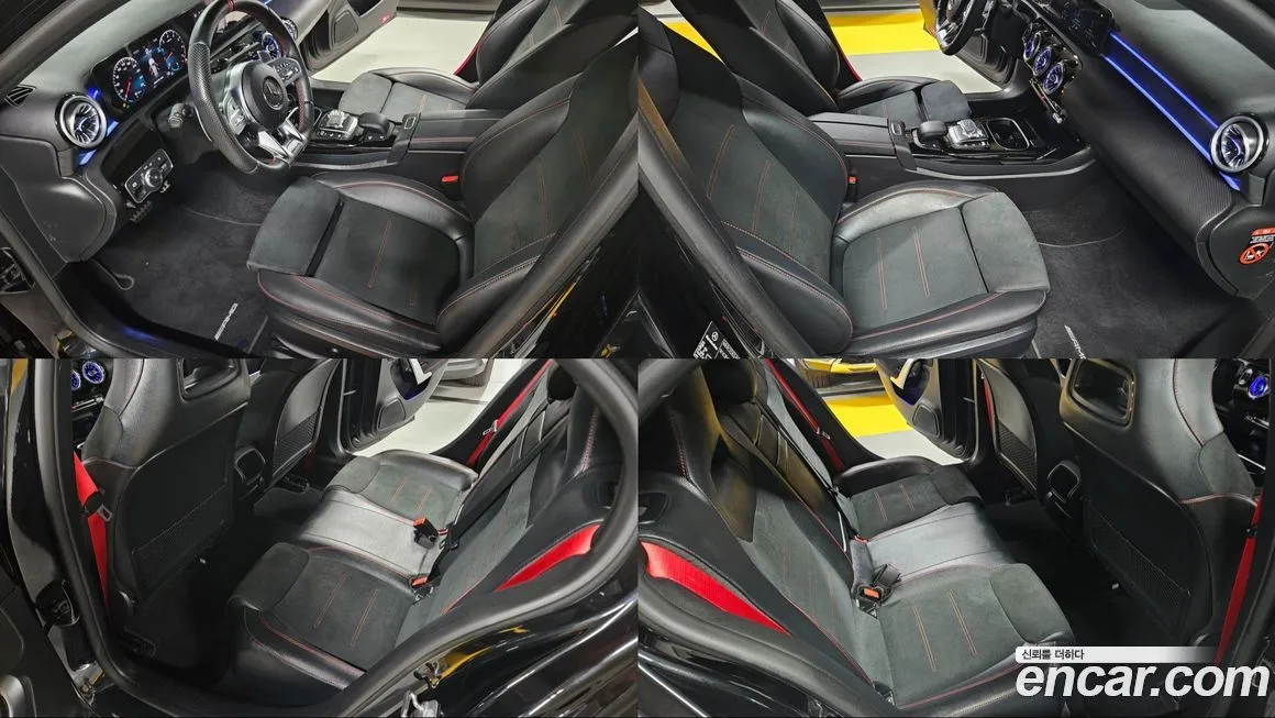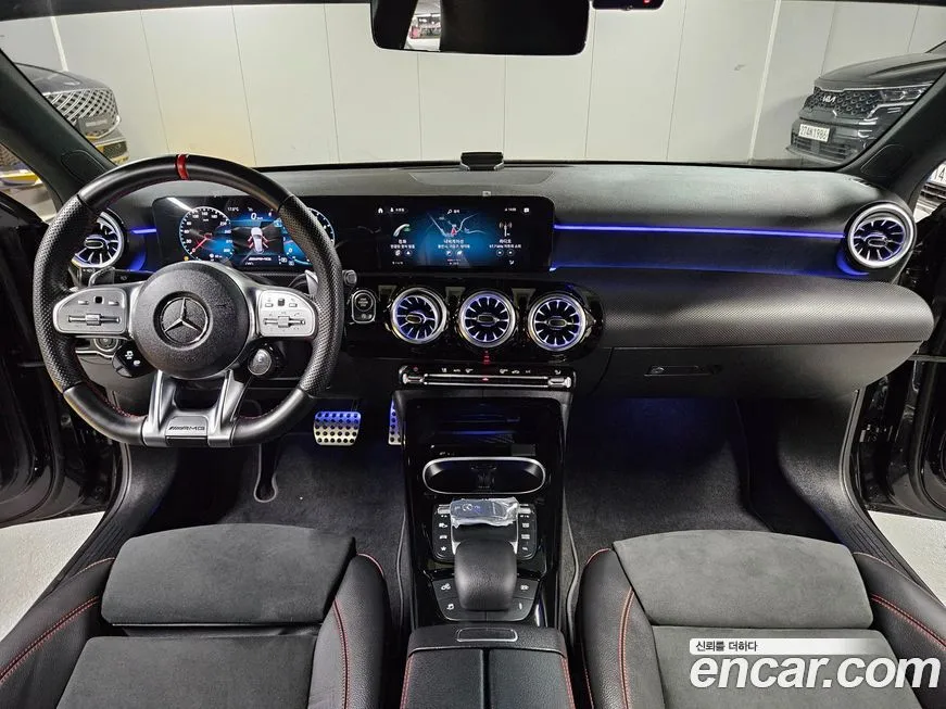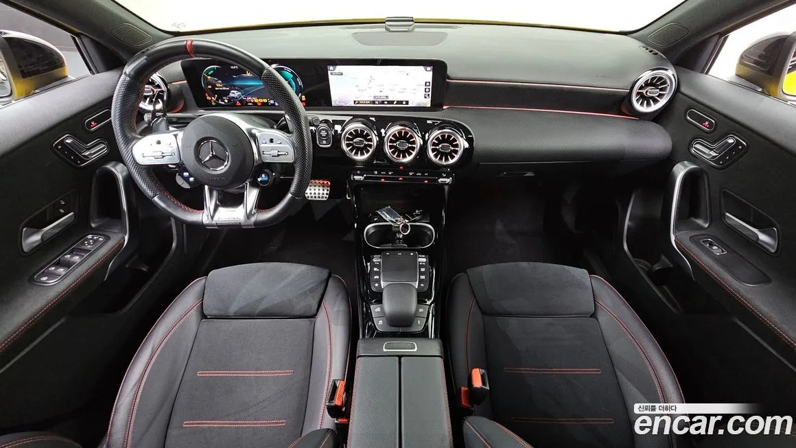 Mercedes-Benz A-Class AMG A45 4MATIC+ Hatchback поставляется с богатым стандартным оснащением, характерным для топовых версий подразделения AMG. Интерьер отличается спортивными сиденьями с развитой боковой поддержкой, рулевым колесом с плоским нижним срезом и отделкой алькантарой в ряде исполнений. Мультимедийная система MBUX с сенсорными экранами и поддержкой голосового управления входит в стандартное оснащение версии. Цифровая приборная панель с настраиваемыми режимами отображения информации позволяет выводить данные о мощности, крутящем моменте и перегрузках в режиме реального времени. Система помощи водителю включает адаптивный круиз-контроль (ACC), систему предупреждения о столкновении и систему контроля полосы движения. Светодиодная оптика (LED) с характерным дневным ходовым светом в стиле AMG входит в стандартную комплектацию для корейского рынка. Аудиосистема премиального класса Burmester доступна в качестве опции, обеспечивая высокое качество звука в салоне. Климатическая система с двухзонным управлением и вентиляцией сидений обеспечивает комфорт в широком диапазоне температур, что особенно актуально с учётом корейского климата.