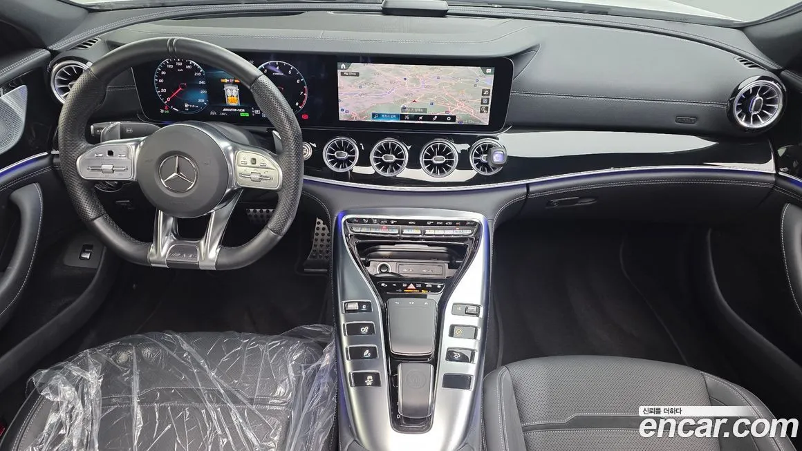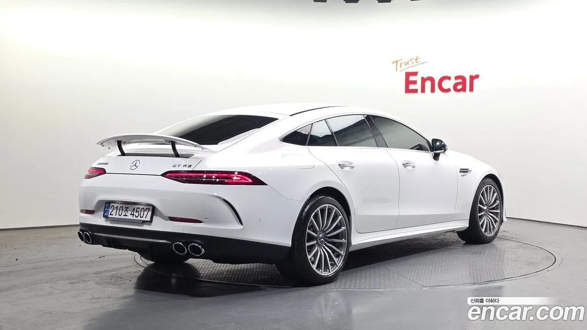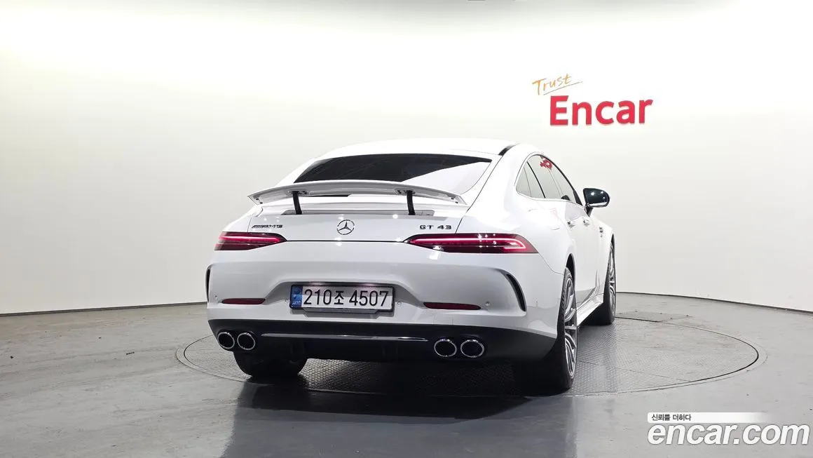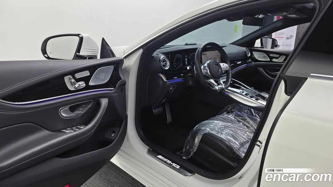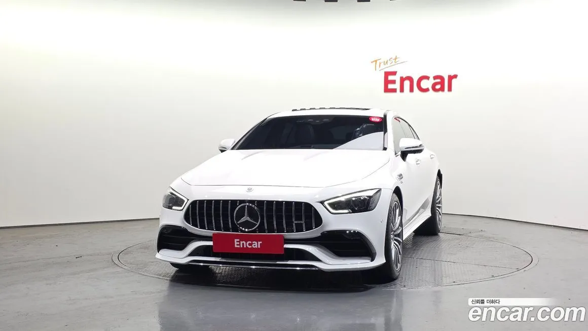 Версия Мерседес-Бенц АМГ ДЖИ ТИ 4Дор 43 4МАТИК+ (Mercedes-Benz AMG GT 4Door 43 4MATIC+) для корейского рынка традиционно поставлялась с богатым стандартным оснащением, включающим мультимедийную систему МБУКС (MBUX) с двумя крупными дисплеями - 12,3-дюймовым приборным экраном и 12,3-дюймовым сенсорным медиаэкраном. Интерьер отделан комбинацией кожи Наппа (Nappa) и алькантары (Alcantara) с контрастной прострочкой, а спортивные сиденья обеспечивают надёжную боковую поддержку. В стандартное оснащение входят передние и задние подогреваемые сиденья, многозонный климат-контроль и панорамная стеклянная крыша. Система активной безопасности включает ассистент удержания в полосе, автоматическое экстренное торможение, адаптивный круиз-контроль и систему мониторинга слепых зон. Светодиодная (LED) оптика с матричными модулями МУЛЬТИБИМ (MULTIBEAM) устанавливалась в зависимости от пакета опций. Акустическая система от именитых партнёров - бренда Бурместер (Burmester) - предлагалась в качестве опции или входила в расширенные пакеты. На корейском рынке автомобиль нередко комплектовался пакетом ночного виденья (Night View Assist) и проекционным дисплеем (Head-Up Display). Колёсные диски из лёгкого сплава диаметром 19 или 20 дюймов входили в базовую или расширенную комплектацию.