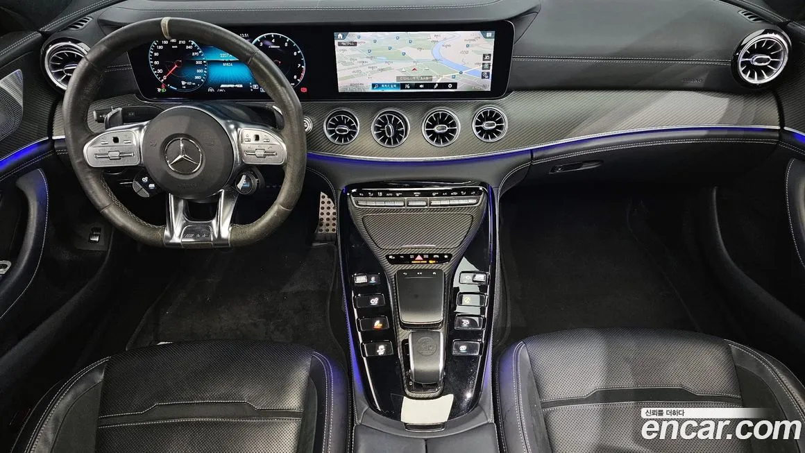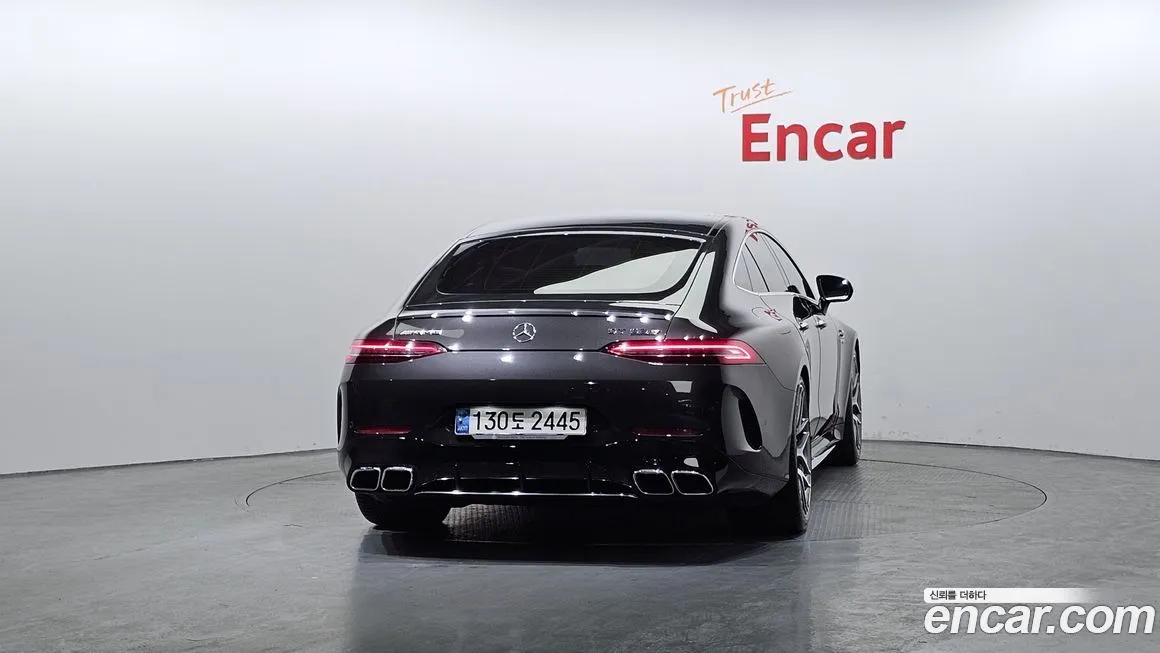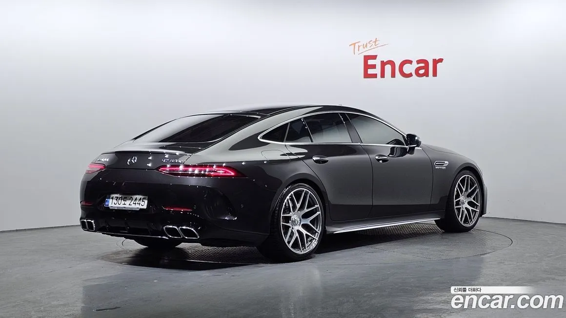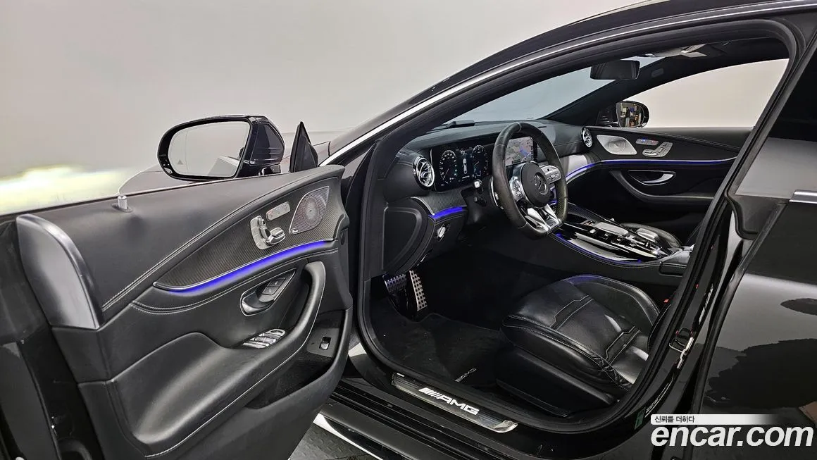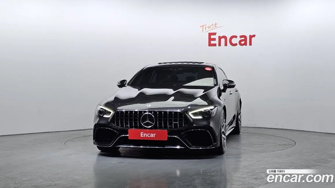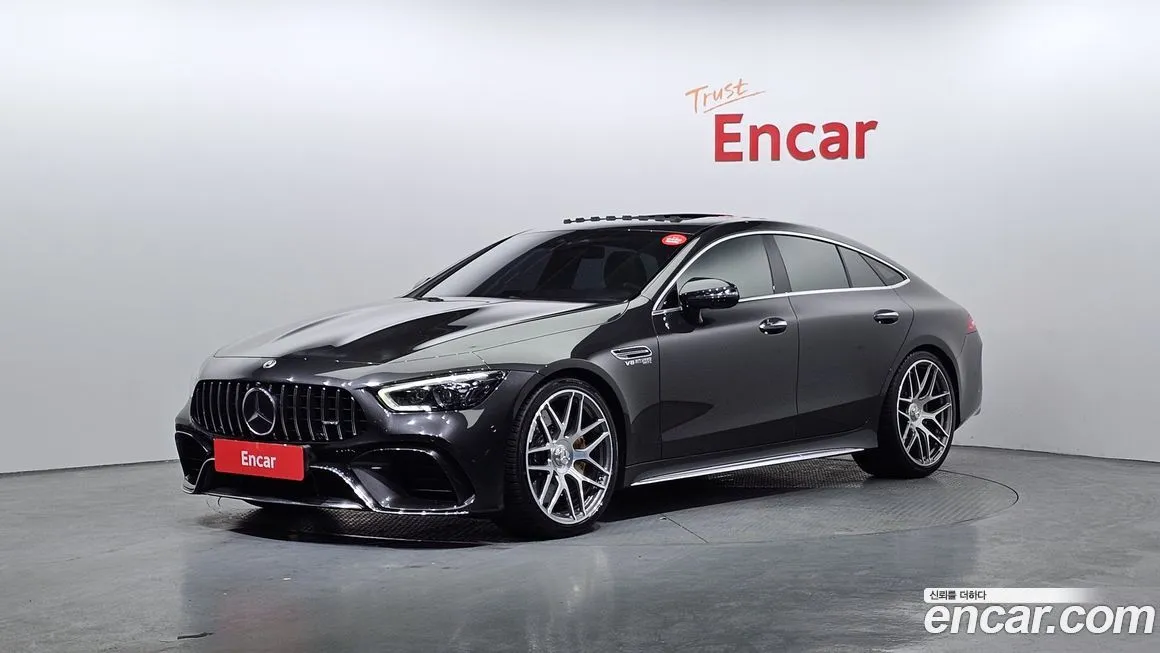 Версия Mercedes-Benz AMG GT 4Door 63 S 4MATIC+ предлагает максимальный уровень оснащения в рамках четырёхдверного семейства AMG GT. Интерьер оформлен с использованием натуральной кожи Nappa и отделочных элементов из углеродного волокна (Carbon Fiber), подчёркивающих спортивный характер автомобиля. Приборная панель выполнена в виде сдвоенного цифрового экрана с системой MBUX, поддерживающей голосовое управление и беспроводную интеграцию смартфонов. Спортивные сиденья с электрорегулировками, вентиляцией, подогревом и массажем доступны как для водителя, так и для переднего пассажира. Аудиосистема Burmester объёмного звука (Burmester 3D Surround Sound) входит в стандартное или опциональное оснащение для корейского рынка. Адаптивный круиз-контроль (ACC) с функцией автоматического торможения, система удержания в полосе (Lane Keeping Assist) и система распознавания дорожных знаков формируют пакет активной безопасности. Светодиодная матричная оптика (Multibeam LED) обеспечивает высокое качество освещения в ночное время. Система мониторинга слепых зон (Blind Spot Assist) и камера заднего вида с парковочными сенсорами входят в базовое оснащение версии. Панорамная крыша и четырёхзонный климат-контроль обеспечивают комфорт всем пассажирам.