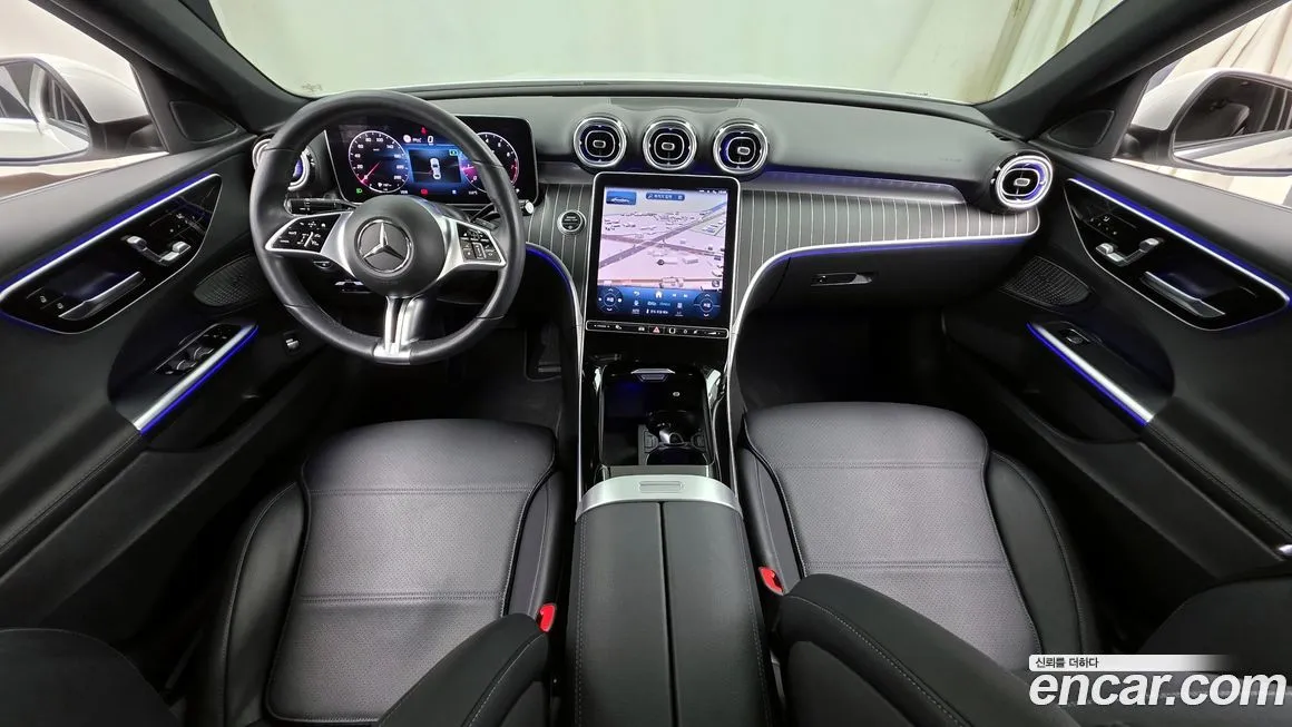 Комплектация Авантгард (Avantgarde) в версии Мерседес-Бенц С200 (Mercedes-Benz C200) для корейского рынка ориентирована на сочетание спортивной стилистики экстерьера с богатым технологическим оснащением салона. Снаружи автомобиль отличается характерной решёткой радиатора со звездой в центре, хромированными вставками, спортивным обвесом с диффузором и боковыми порогами в стиле Авантгард (Avantgarde). Интерьер оформлен с использованием двух больших изогнутых дисплеев: 12,3-дюймового цифрового щитка приборов и 11,9-дюймового сенсорного экрана мультимедийной системы МБУКС (MBUX - Mercedes-Benz User Experience). Система МБУКС (MBUX) поддерживает голосовое управление, навигацию с онлайн-обновлением карт, интеграцию смартфона через Эпл КарПлей (Apple CarPlay) и Андроид Ауто (Android Auto), а также адаптирована для корейского рынка с поддержкой локального языкового интерфейса. В базовое оснащение версии Авантгард (Avantgarde) для Кореи входят светодиодная оптика (LED) спереди и сзади, двухзонный климат-контроль, подогрев передних сидений, электрорегулировка водительского кресла с памятью положений, система бесключевого доступа и запуска двигателя. Активные системы безопасности включают систему экстренного торможения с распознаванием пешеходов и велосипедистов, адаптивный круиз-контроль, систему удержания в полосе и контроль слепых зон. Отделка салона предусматривает использование высококачественных материалов: мягкий пластик на всех поверхностях, тканевая или кожаная обивка сидений в зависимости от выбранного пакета, а также декоративные вставки из алюминия или дерева. Корейская версия Мерседес-Бенц С200 Авантгард (Mercedes-Benz C200 Avantgarde) нередко поставляется с расширенными пакетами оснащения, включая панорамную крышу, проекционный дисплей (HUD - head-up display) и улучшенную аудиосистему Бурместер (Burmester).
