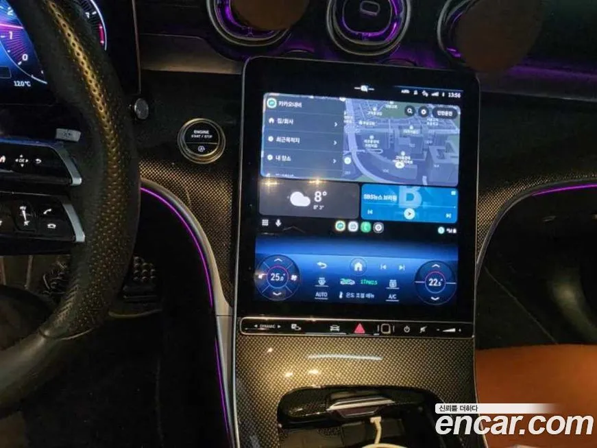 Комплектация С300 АМГ Лайн (C300 AMG Line) для корейского рынка традиционно предполагает расширенный набор оборудования по сравнению с базовыми исполнениями Мерседес-Бенц Си-Класс (Mercedes-Benz C-Class). Снаружи автомобиль отличается специфическим бампером в стиле АМГ (AMG) с крупными воздухозаборниками, боковыми порогами с характерными накладками и диффузором сзади. Светодиодная (LED) оптика устанавливается в штатном режиме, а в ряде случаев доступны матричные светодиодные (Multibeam LED) фары с адаптивным освещением. Интерьер версии АМГ Лайн (AMG Line) включает спортивные сиденья с развитой боковой поддержкой, отделку рулевого колеса кожей и вставки с характерным декором. Цифровая приборная панель и мультимедийный экран системы МБУКС (MBUX) являются центральными элементами кабины: они объединены в единый изогнутый дисплей диагональю около 11,9 дюйма. Система МБУКС (MBUX) поддерживает голосовое управление, навигацию, беспроводное подключение смартфона по технологии Эпл КарПлей (Apple CarPlay) и Андроид Ауто (Android Auto). Климатическая система - двухзонный автоматический климат-контроль с возможностью расширения до трёхзонного. Пакет помощи водителю включает адаптивный круиз-контроль, систему удержания в полосе, систему распознавания дорожных знаков и ассистент слепых зон. Панорамный люк и вентиляция передних сидений могут входить в оснащение в зависимости от года выпуска и конкретной конфигурации для корейского рынка.