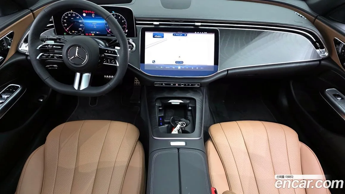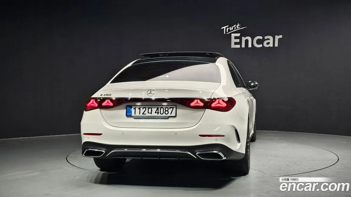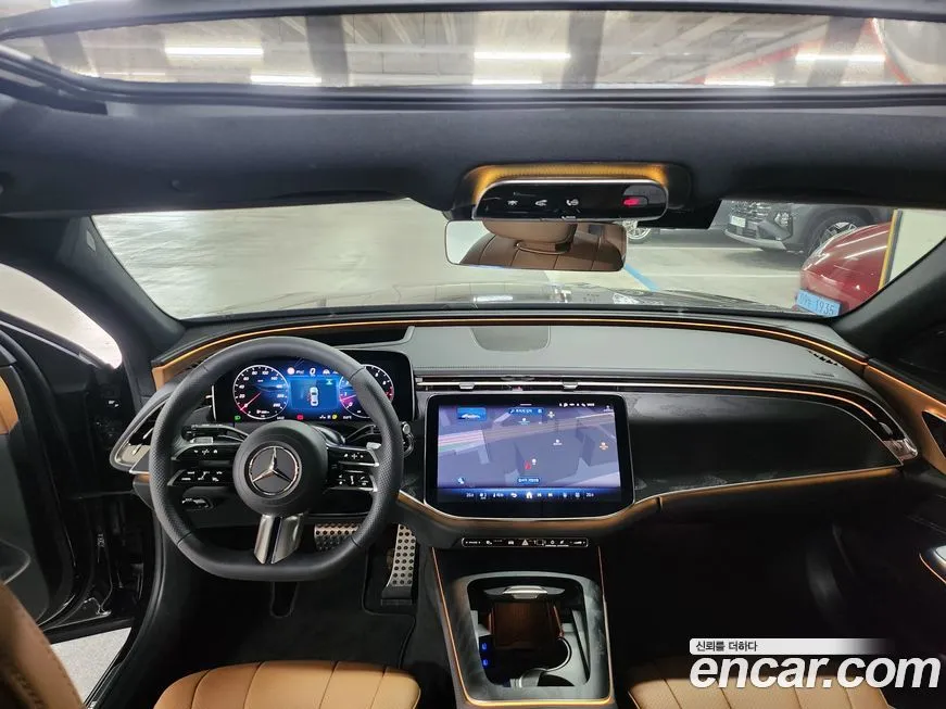 Пакет AMG Line в версии E200 трансформирует облик автомобиля как снаружи, так и внутри: снаружи устанавливаются бамперы с характерными воздухозаборниками в стиле AMG, боковые пороги, диффузор в задней части кузова и спортивная решётка радиатора. В интерьере Mercedes-Benz E-Class E200 AMG Line предусмотрены спортивные сиденья с развитой боковой поддержкой, отделанные кожей Nappa, руль в стиле AMG с плоским нижним срезом, а также алюминиевые вставки в отделке. Центральное место в кабине занимает система MBUX (Mercedes-Benz User Experience) с двумя крупными дисплеями: комбинацией приборов с диагональю 12.3 дюйма и центральным сенсорным экраном 12.8 дюйма с поддержкой голосового управления. В базовое оснащение для рынка Кореи входят светодиодная оптика (LED) с функцией адаптивного распределения светового потока (MULTIBEAM LED), система бесключевого доступа (Keyless Go), двухзонный климат-контроль и беспроводная зарядка смартфона. Комплектация включает расширенный пакет систем безопасности: автоматическое экстренное торможение (AEB - Autonomous Emergency Braking), удержание в полосе (LKA - Lane Keeping Assist), адаптивный круиз-контроль (ACC - Adaptive Cruise Control) с функцией Stop-and-Go, а также систему мониторинга слепых зон (BSM - Blind Spot Monitoring). Аудиосистема Burmester в ряде версий доступна как опция, обеспечивая высококачественное звучание в салоне. Панорамная крыша с электроприводом также входит в стандартное оснащение версии для корейского рынка, создавая ощущение простора в салоне.