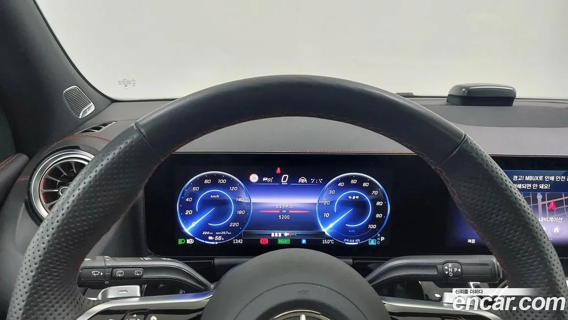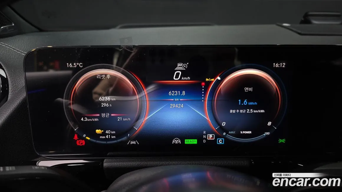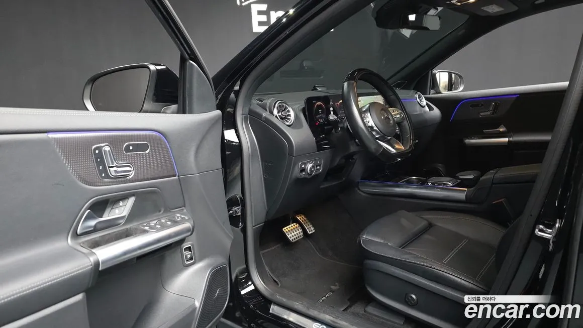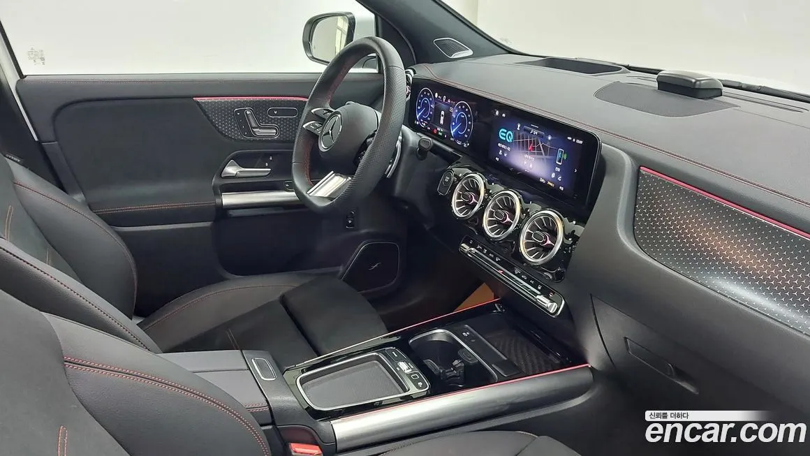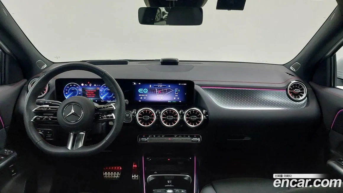 Версия АМГ Лайн (AMG Line) для корейского рынка отличается от базовых исполнений прежде всего внешним видом и рядом дополнительных технологий. Экстерьер включает спортивный бампер в стиле АМГ (AMG), решётку радиатора с характерным узором, боковые пороги с аэродинамическими элементами и диффузор в задней части кузова. Светодиодная (LED) оптика входит в стандартное оснащение, а в ряде рынков предлагается матричная светодиодная (Multibeam LED) система головного освещения в качестве опции. Интерьер оформлен с использованием спортивных сидений с интегрированными подголовниками и логотипами АМГ (AMG), а руль выполнен в спортивном стиле с отделкой кожей Наппа (Nappa). Мультимедийная система МБУКС (MBUX - Mercedes-Benz User Experience) включает два дисплея диагональю 10,25 дюйма каждый - один для приборной панели, второй для центральной консоли. Система поддерживает голосовое управление, навигацию с учётом зарядной инфраструктуры, а также интеграцию смартфонов через Эпл КарПлей (Apple CarPlay) и Андроид Авто (Android Auto). В комплектацию также входит пакет систем помощи водителю (АДАС / ADAS), включающий адаптивный круиз-контроль, систему удержания в полосе и автоматическое экстренное торможение. Панорамный люк и многозонный климат-контроль с предварительным кондиционированием салона при подключении к зарядке дополняют оснащение корейской версии АМГ Лайн (AMG Line).