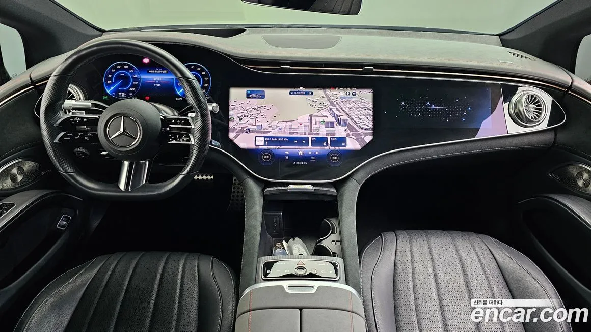 Mercedes-Benz EQS EQS450+ AMG Line выделяется на фоне стандартных версий прежде всего спортивным оформлением кузова: передний бампер с характерными воздухозаборниками в стиле AMG Line, боковые накладки и диффузор задней части создают узнаваемый облик. В интерьере доминирует знаменитая панорамная мультимедийная система Hyperscreen, объединяющая три дисплея в единое изогнутое полотно, которое охватывает практически всю переднюю панель. Сиденья AMG Line обиты высококачественной кожей и оснащены многозонным подогревом, вентиляцией и массажной функцией. Система звука от премиального аудиобренда обеспечивает концертное качество воспроизведения в салоне. Комплектация включает полный набор систем активной безопасности: адаптивный круиз-контроль (ACC), систему удержания в полосе (Lane Keeping Assist), автоматическое экстренное торможение (Autonomous Emergency Braking) и систему распознавания дорожных знаков. Панорамная стеклянная крыша с электроприводом добавляет ощущение простора в и без того просторном салоне. Двухзонный, а в ряде версий четырёхзонный климат-контроль обеспечивает индивидуальный микроклимат для каждого пассажира. Бесключевой доступ и система дистанционного управления через смартфон входят в стандартное оснащение версии AMG Line для корейского рынка.