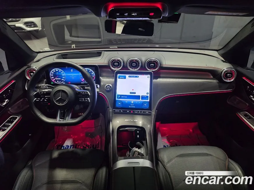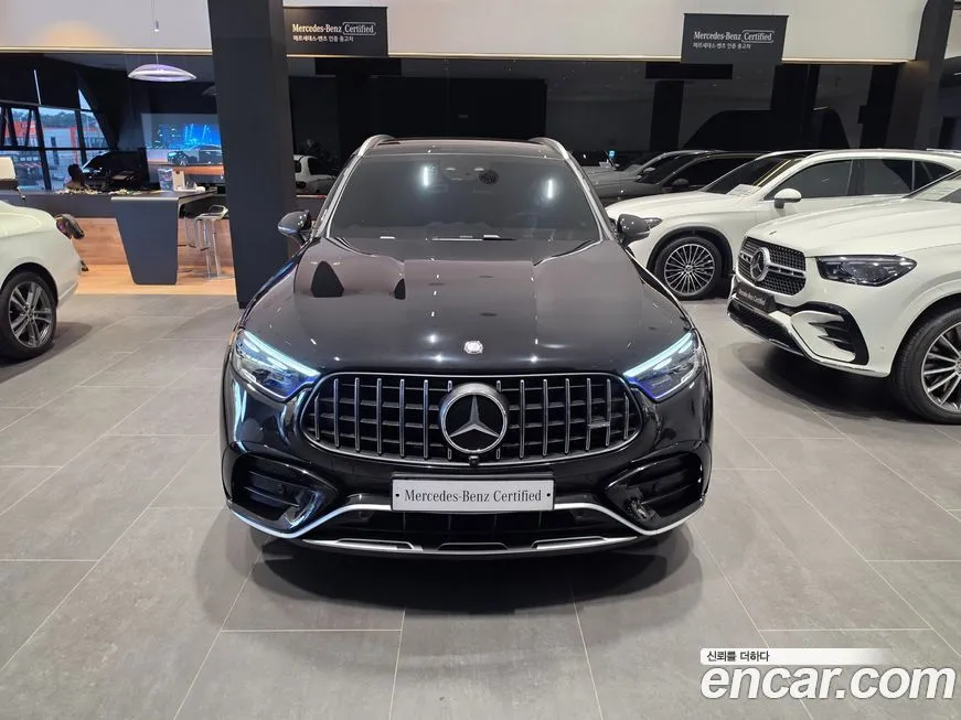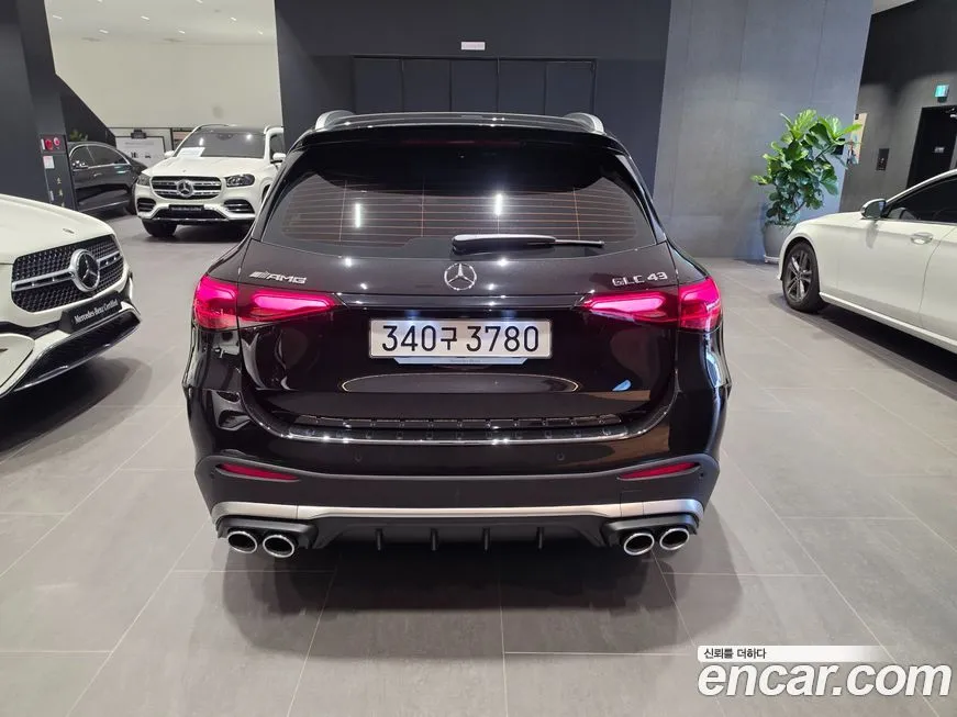 Версия Мерседес-Бенц АМГ ДЖЛСи43 4МАТИК (Mercedes-Benz AMG GLC43 4MATIC) для корейского рынка традиционно поставляется в богатой базовой комплектации, включающей весь спектр фирменных технологий и оснащения. Экстерьер выделяется уникальным бампером АМГ (AMG) с крупными воздухозаборниками, спортивной решёткой радиатора Пэнамерикана (Panamericana) с вертикальными ламелями, расширенными колёсными арками и диффузором в задней части. Интерьер оформлен в спортивном стиле: устанавливаются спортивные сиденья АМГ (AMG) с развитой боковой поддержкой, обтянутые кожей Наппа (Nappa) или комбинированным материалом с перфорацией, а также плоское снизу рулевое колесо АМГ (AMG) с кнопками управления режимами езды. Информационно-развлекательная система представлена последним поколением МБУКС (MBUX - Mercedes-Benz User Experience) с сенсорным дисплеем от 11,9 дюйма во втором поколении и голосовым управлением. В базовое оснащение для корейского рынка, как правило, входят: система кругового обзора 360 градусов, адаптивный круиз-контроль, система удержания в полосе, проекционный дисплей (Хэд-ап дисплей / Head-up Display), панорамная крыша, система бесключевого доступа и запуска, подогрев и вентиляция передних сидений, а также система беспроводной зарядки смартфона. Звуковая система Бурместер (Burmester) предлагается в качестве опции и пользуется высоким спросом на корейском рынке. Система активной безопасности включает пакет Драйвинг Ассистанс (Driving Assistance Package) с автоматическим экстренным торможением, распознаванием пешеходов и контролем слепых зон. Колёсные диски АМГ (AMG) диаметром 20 или 21 дюйм в зависимости от конфигурации завершают спортивный образ версии.