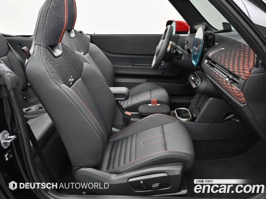Комплектация Мини Купер Кабриолет ДжейСиДаблю (Mini Cooper Convertible JCW) для корейского рынка традиционно включает расширенный набор оборудования по сравнению с базовыми версиями. Интерьер оформлен в спортивном стиле: руль Джон Купер Воркс (John Cooper Works) с лепестками переключения передач, спортивные сиденья с развитой боковой поддержкой, отделка алькантарой (Alcantara) и карбоновыми вставками. Центральный дисплей системы Мини Навигейшн (Mini Navigation) обеспечивает навигацию, подключение смартфона по беспроводному протоколу и управление мультимедиа. В стандартную комплектацию для данного рынка, как правило, входят: адаптивный круиз-контроль (Adaptive Cruise Control), система удержания в полосе (Lane Departure Warning), камера заднего вида, парктроники спереди и сзади. Аудиосистема Харман Кардон (Harman Kardon) обеспечивает высокое качество звука в открытом кузове. Светодиодная оптика (LED) с функцией автоматического переключения дальнего света входит в стандартное оснащение версии ДжейСиДаблю (JCW). Система стабилизации ДСК (DSC) с возможностью отключения для спортивной езды, а также режимы езды - Грин (Green), Мид (Mid), Спорт (Sport) и Джон Купер Воркс (John Cooper Works) - позволяют адаптировать поведение автомобиля к предпочтениям водителя. Климат-контроль двухзонный, подогрев передних сидений и руля входят в стандартное оснащение для корейского рынка.