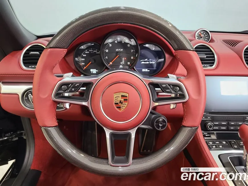Версия Порше (Porsche) 718 4.0 ГТС (GTS) отличается богатым стандартным оснащением, которое выгодно выделяет её на фоне менее дорогих модификаций линейки. В стандартное оснащение входят спортивные сиденья с развитой боковой поддержкой, обтянутые кожей и алькантарой (Alcantara), а рулевое колесо и вставки в интерьере также выполнены с использованием этого материала. Информационно-развлекательная система Порше Коммуникейшн Менеджмент (PCM - Porsche Communication Management) с сенсорным экраном и поддержкой беспроводного подключения смартфона входит в базовую комплектацию для корейского рынка. Адаптивные амортизаторы ПАСМ (PASM), спортивный выхлоп и активная система стабилизации ПСМ (PSM - Porsche Stability Management / Порше Стэбилити Менеджмент) с возможностью частичного отключения являются стандартными для ГТС (GTS). Светодиодная оптика (LED) с динамическими указателями поворота и адаптивной системой освещения ПХЛ (PDLS - Porsche Dynamic Light System / Порше Дайнемик Лайт Систем) предусмотрена в базовом оснащении версии для Кореи. Аэродинамический обвес с более агрессивными бамперами, расширенными порогами и фиксированным задним спойлером придают внешнему виду ГТС (GTS) узнаваемый спортивный облик. Среди доступных опций для корейского рынка выделяются карбон-керамические тормоза ПККБ (PCCB - Porsche Ceramic Composite Brake / Порше Серамик Композит Брейк), облегчённые кованые диски, спортивный хроностопор (Chrono Package) и система Порше Торк Векторинг (PTV - Porsche Torque Vectoring / Порше Торк Векторинг). Климатическая система, система кругового обзора и премиальная аудиосистема БОЗЕ (Bose) или Бурместер (Burmester) также доступны в качестве дополнительных опций.