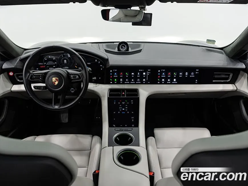 Porsche Taycan Turbo в стандартном оснащении включает полностью цифровую приборную панель (Digital Instrument Cluster) с изогнутым экраном, охватывающим зону водителя. Центральная мультимедийная система построена на базе большого сенсорного дисплея с поддержкой беспроводного подключения смартфонов (Apple CarPlay и Android Auto). В базовое оснащение версии Turbo входят светодиодная (LED) матричная головная оптика с динамической функцией поворота и адаптивной регулировкой яркости. Система звукового сопровождения Porsche Electric Sport Sound создаёт искусственный звуковой фон в салоне и снаружи автомобиля, имитируя спортивный характер езды. Климатическая система с несколькими зонами регулировки, включая отдельное управление для задних пассажиров, входит в стандартную комплектацию. Пакет активных систем безопасности включает адаптивный круиз-контроль (ACC - Adaptive Cruise Control), систему удержания в полосе (Lane Keep Assist), предупреждение о лобовом столкновении с автоматическим экстренным торможением. Спортивные сиденья с развитой боковой поддержкой и электрорегулировкой в большом количестве положений стандартно устанавливаются в версии Turbo. Панорамная стеклянная крыша с электрошторкой доступна в качестве опции для корейского рынка. Аудиосистема премиального уровня Bose или опциональная BURMESTER входят в перечень доступных улучшений. Система навигации с поддержкой обновлений по беспроводной сети (OTA - Over The Air) и интеграцией планировщика маршрутов с учётом зарядных станций является стандартной для данной версии.